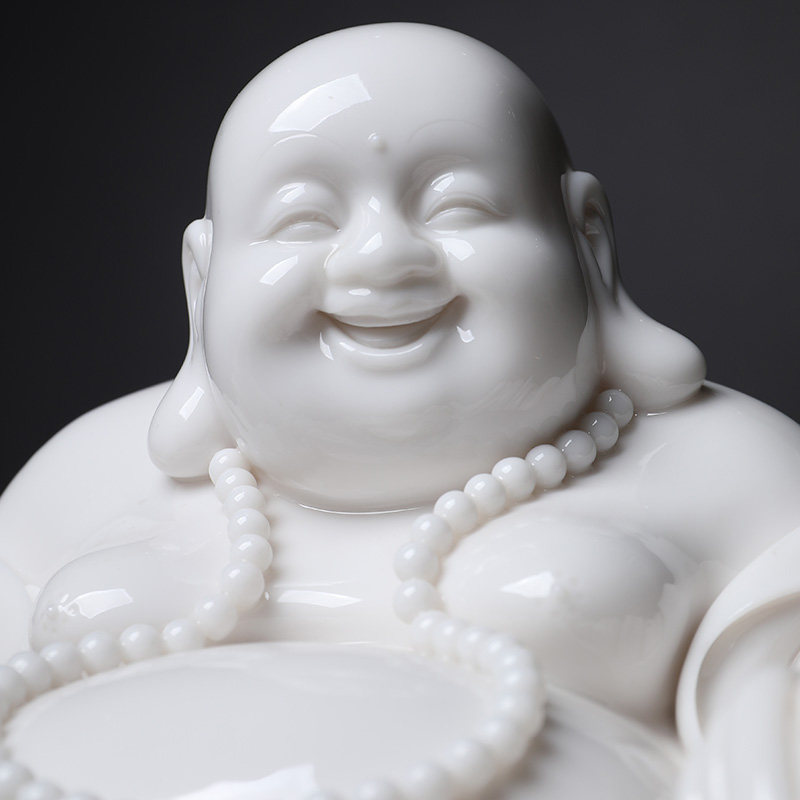 戴玉堂陶瓷摆件《托宝弥勒笑佛》陈文德德化白瓷佛像客厅艺术品