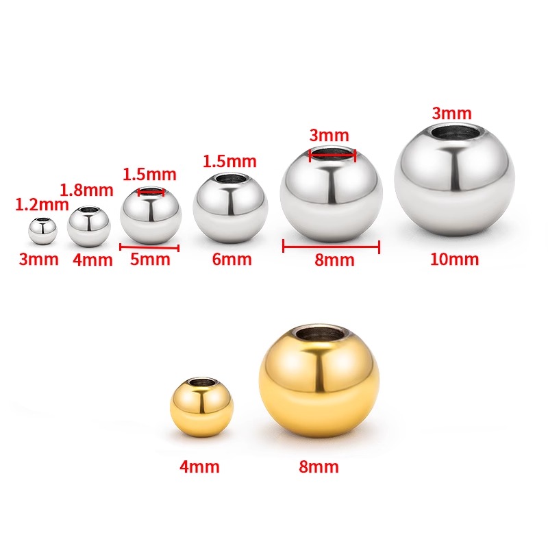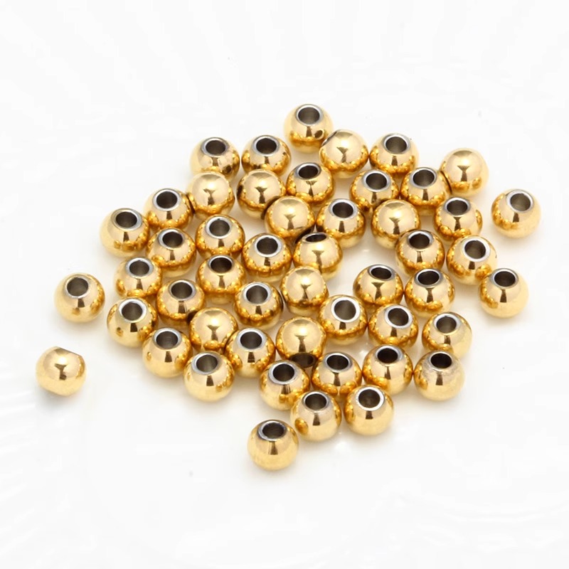 钛钢圆珠18K金色散珠diy项链手链通孔珠串珠时尚隔珠饰品手工配件