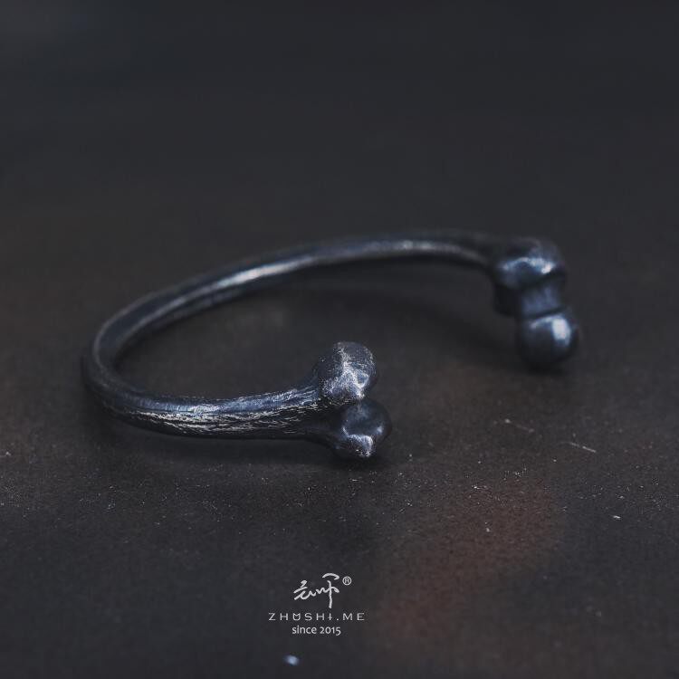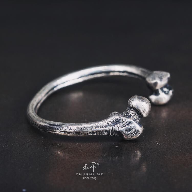主师原创2023设计新款骷髅骨头纯银开口手工打造暗黑系手镯