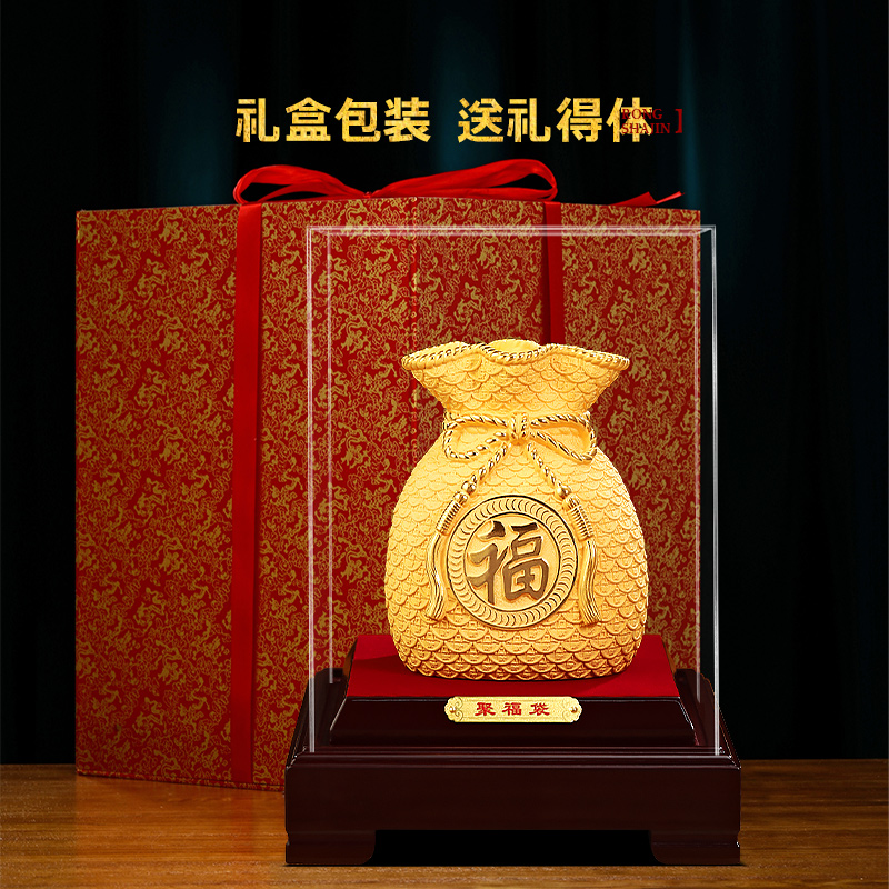 绒沙金聚福袋摆件招财客厅玄关酒柜高档装饰工艺品搬新家乔迁礼物