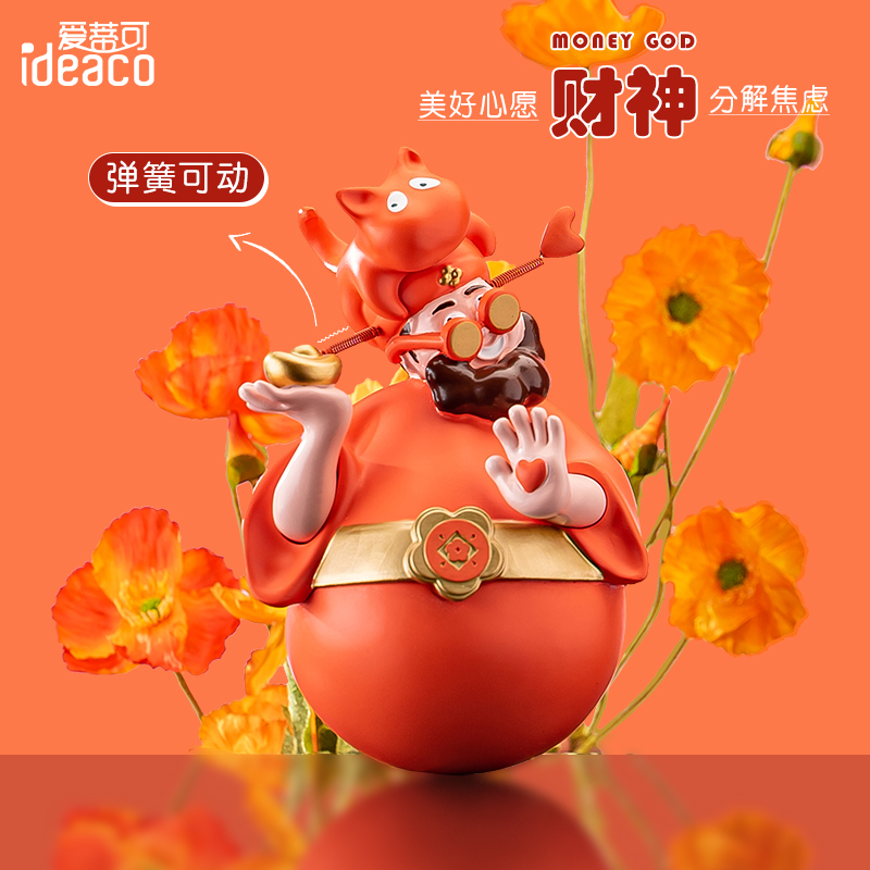 四喜财神爷桌面摆件店铺前台聚财装饰品客厅家用办公室开业礼品