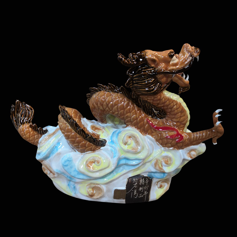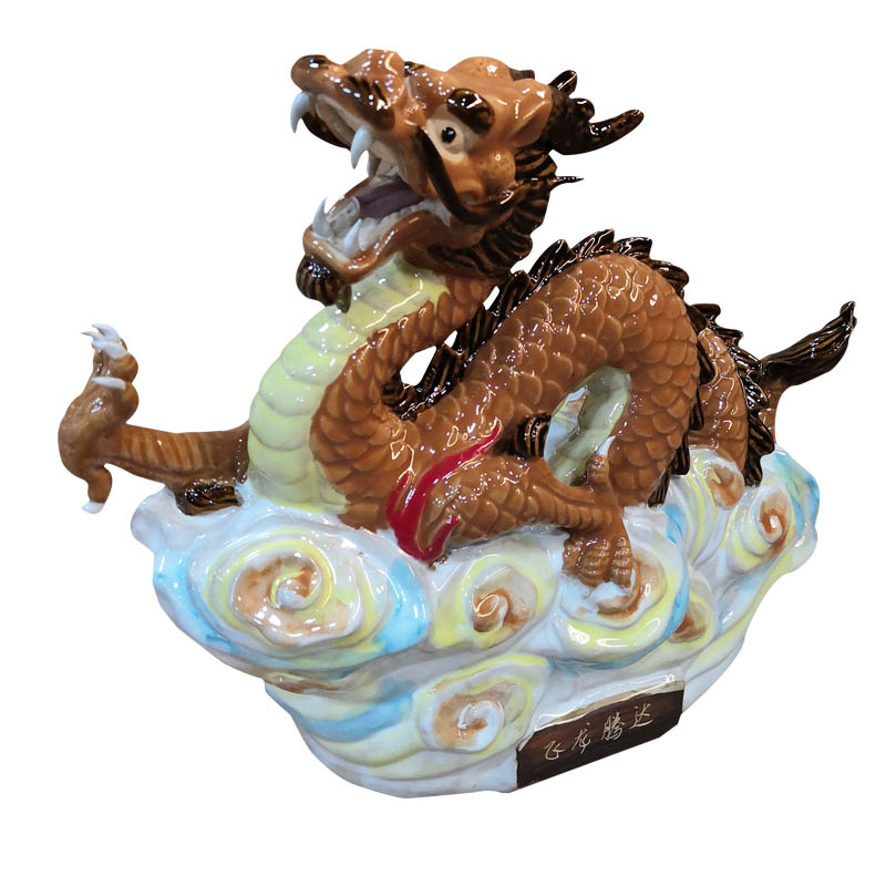 石湾公仔陶瓷龙摆件招财镇宅风水装饰品书房办公室家居黄龙摆设品