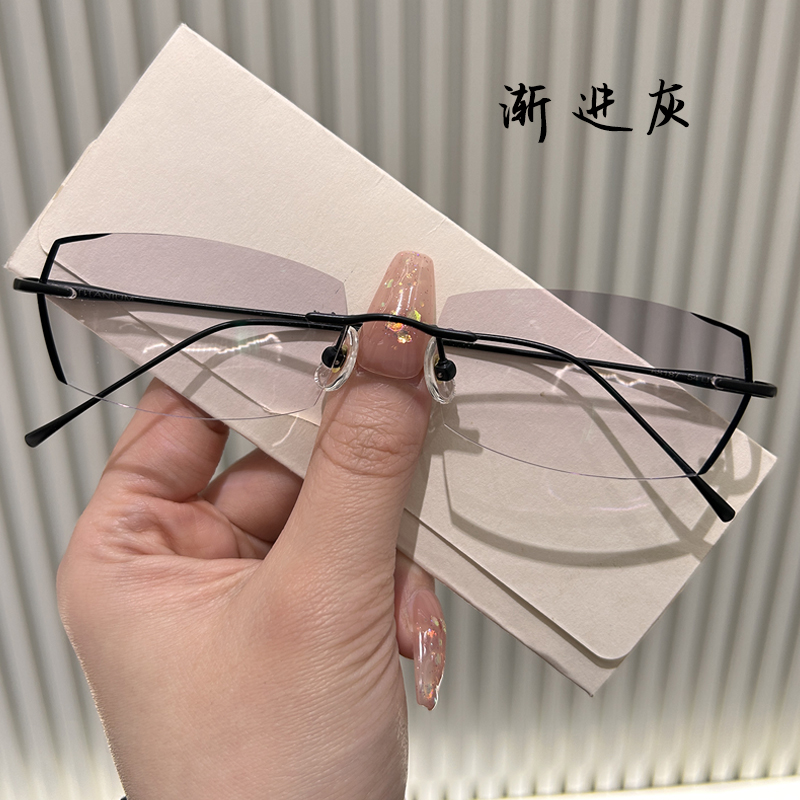 纯钛超轻无框眼镜男大脸近视可配有度数无边框潮变色防雾防蓝光女