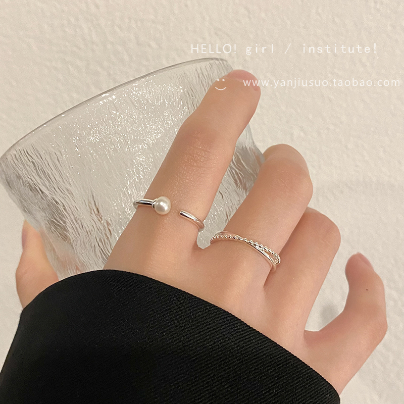 极简珍珠交叉开口戒指女轻奢高级感食指戒2025年新款小众设计指环