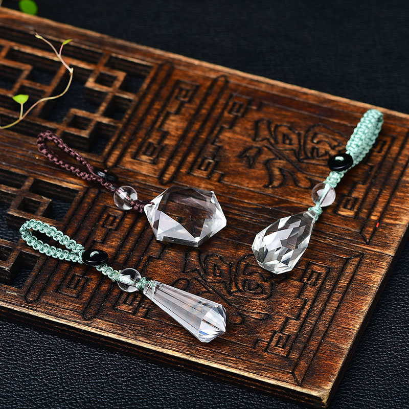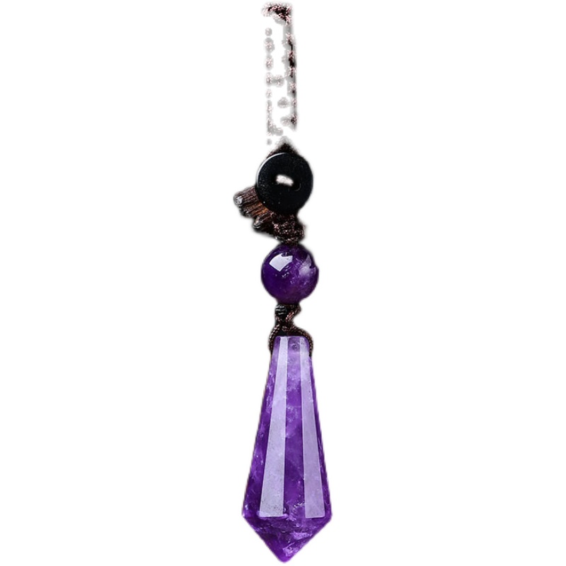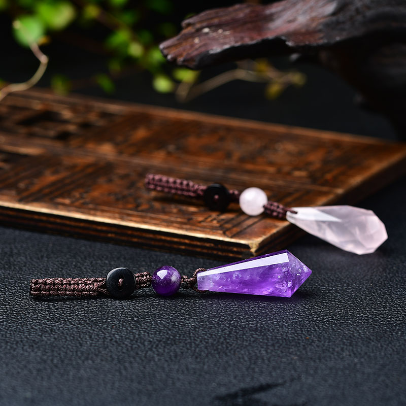天然粉白紫水晶六芒星水滴包挂钥匙扣饰品装饰原石六棱柱配饰