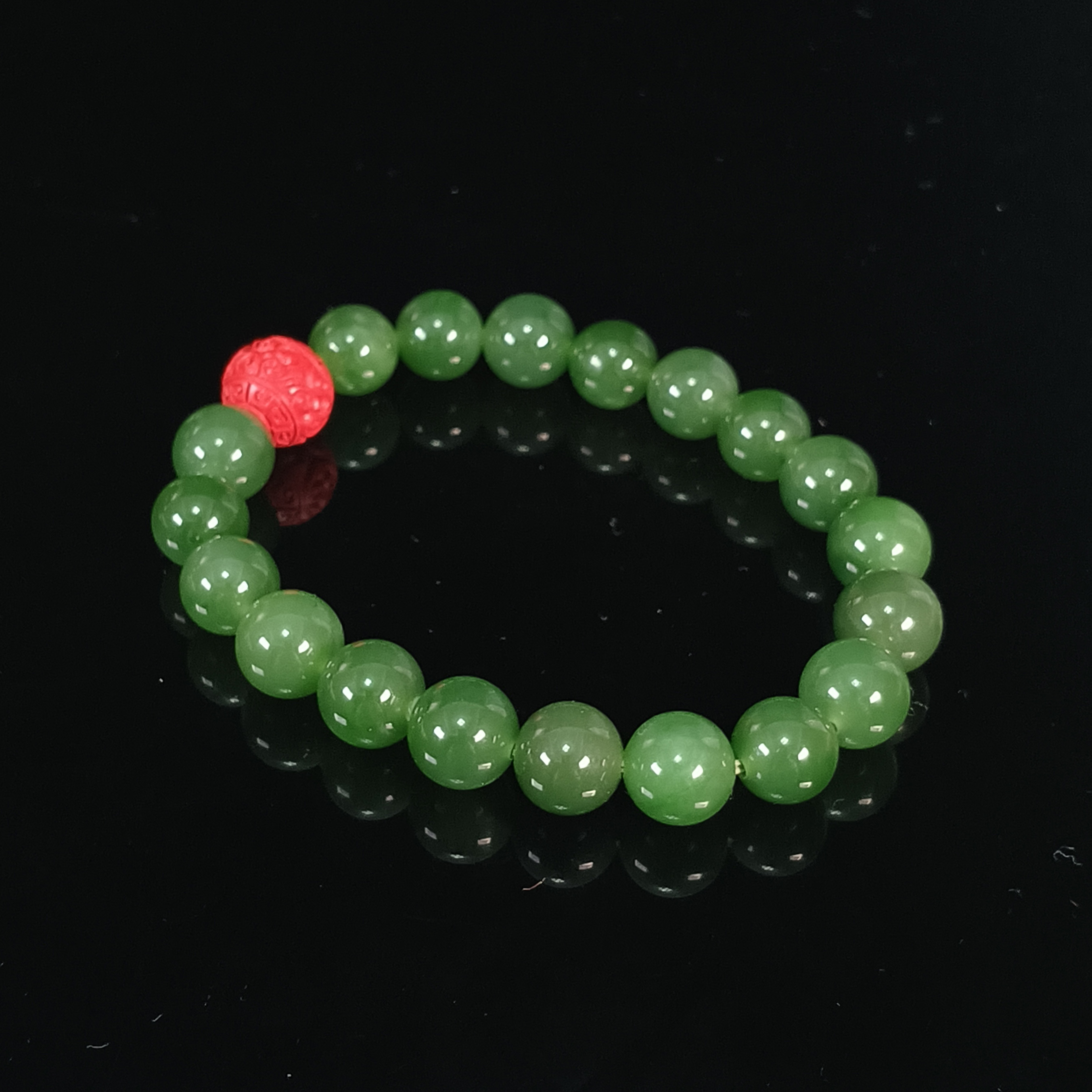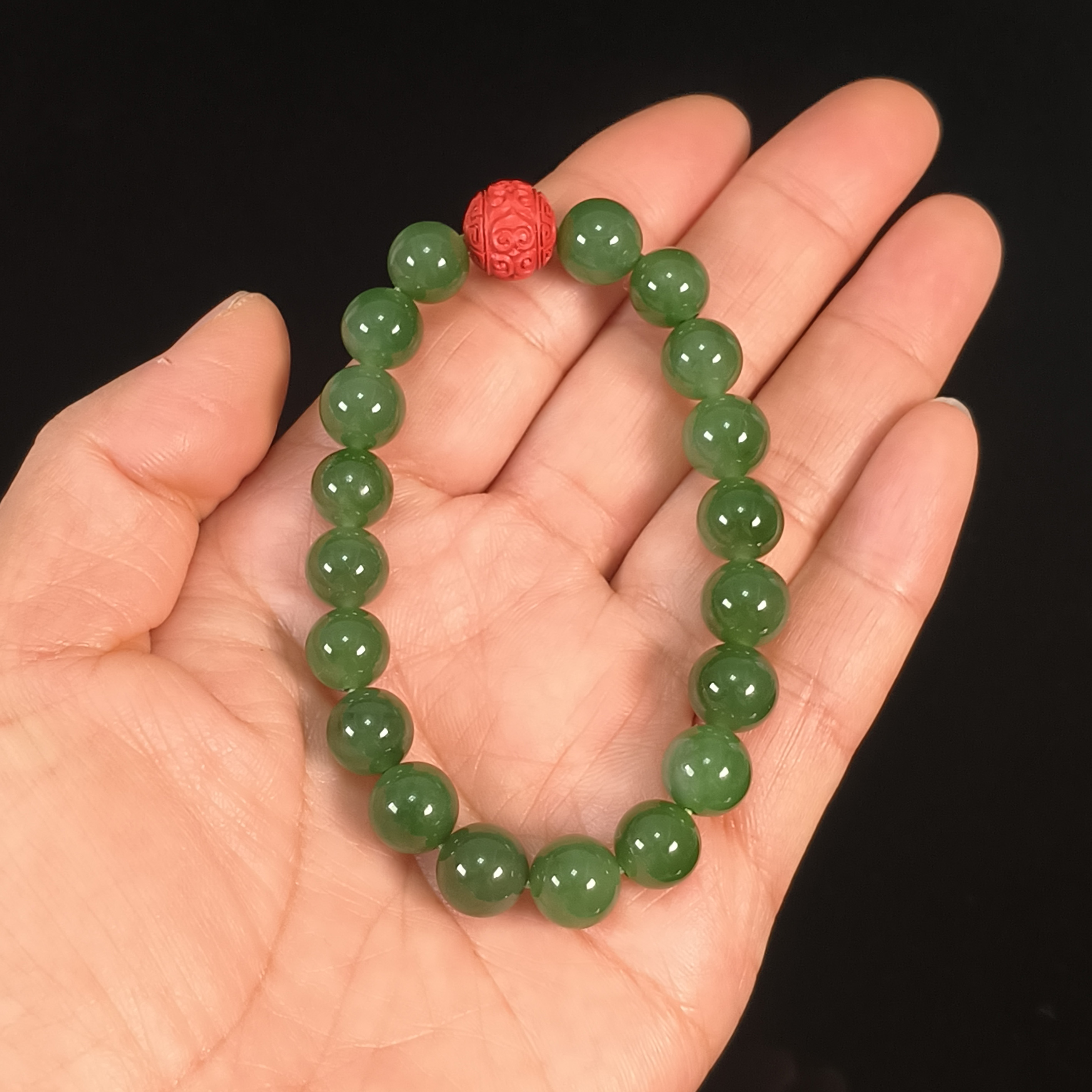 和田玉碧玉手串(朱砂款) 重量约26克 尺寸9mm*19粒 周长17cm"