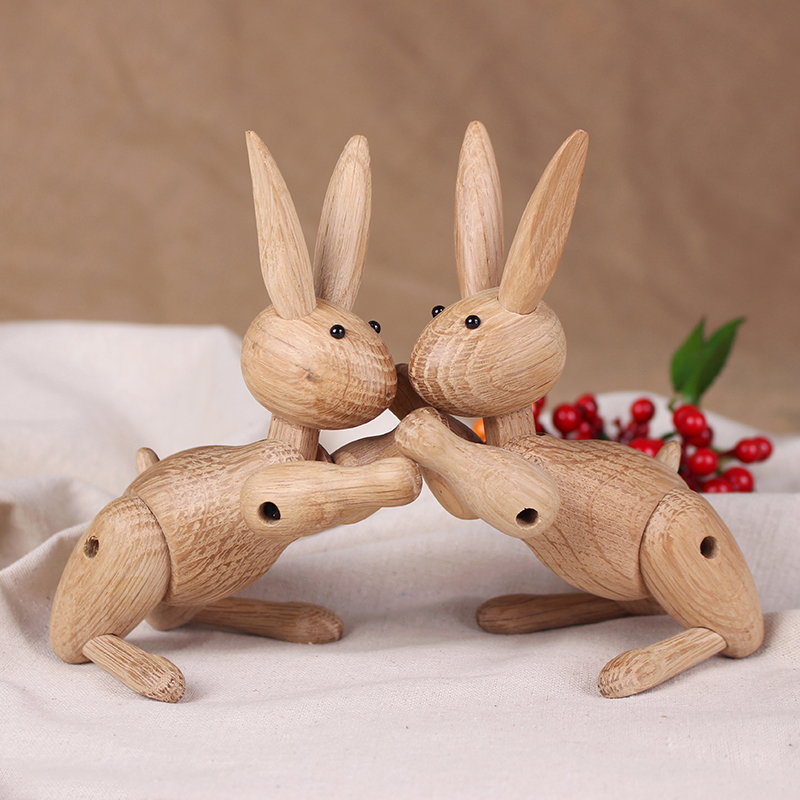 丹麦创意木偶生肖兔子摆件家居饰品 创意可爱实木工艺品 生日礼物