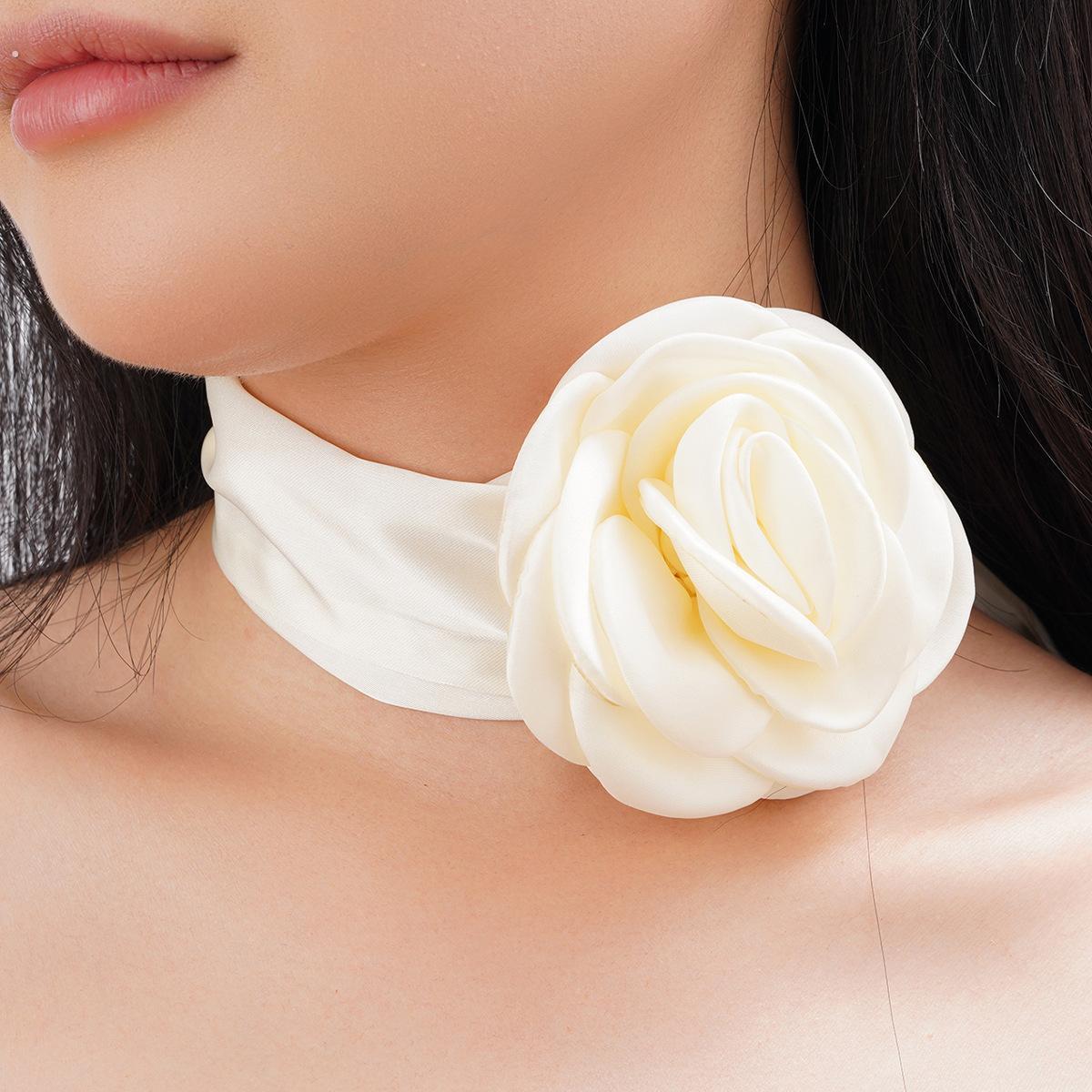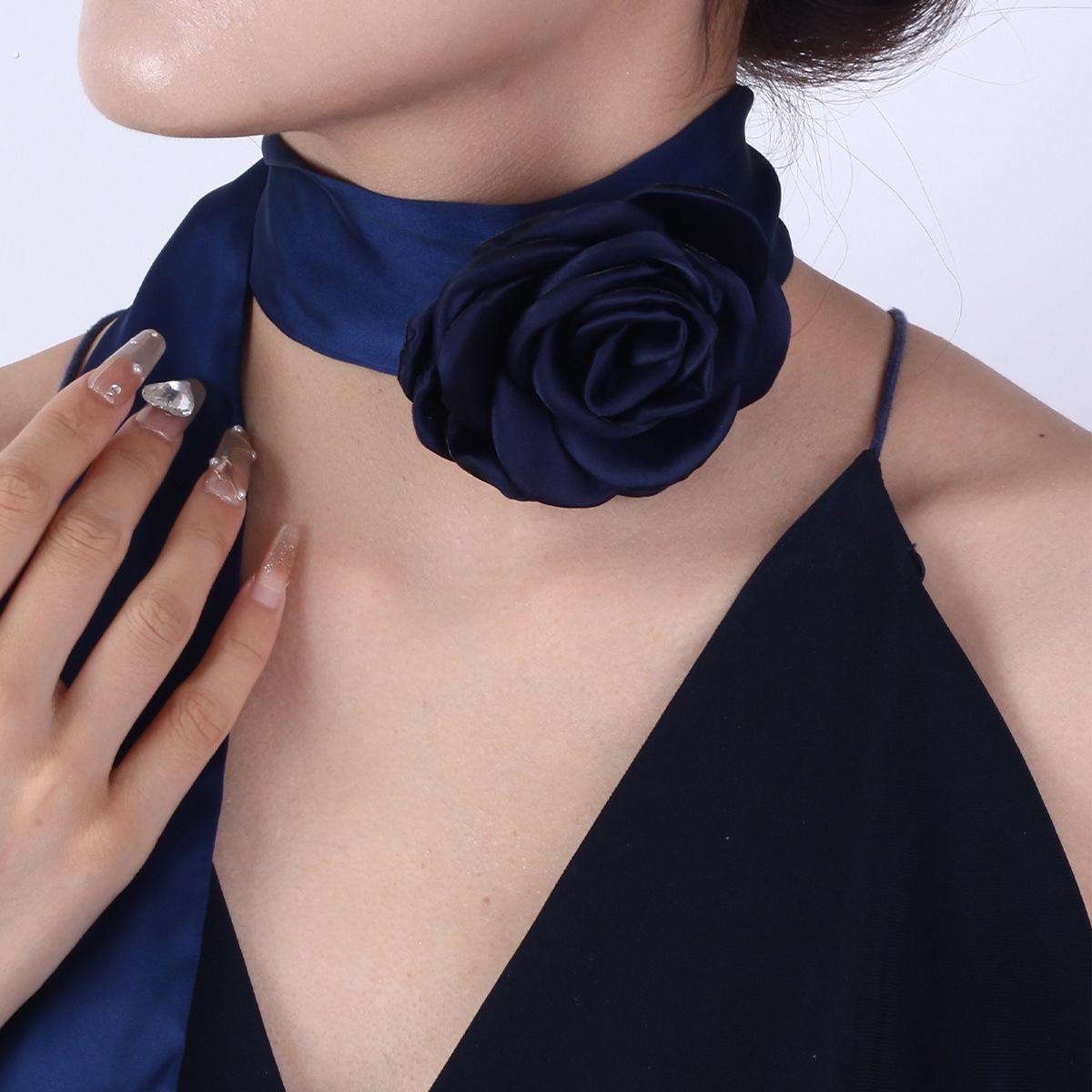 玫瑰花颈炼项圈花朵法式脖子自由打结绑带颈花女项炼黑色06