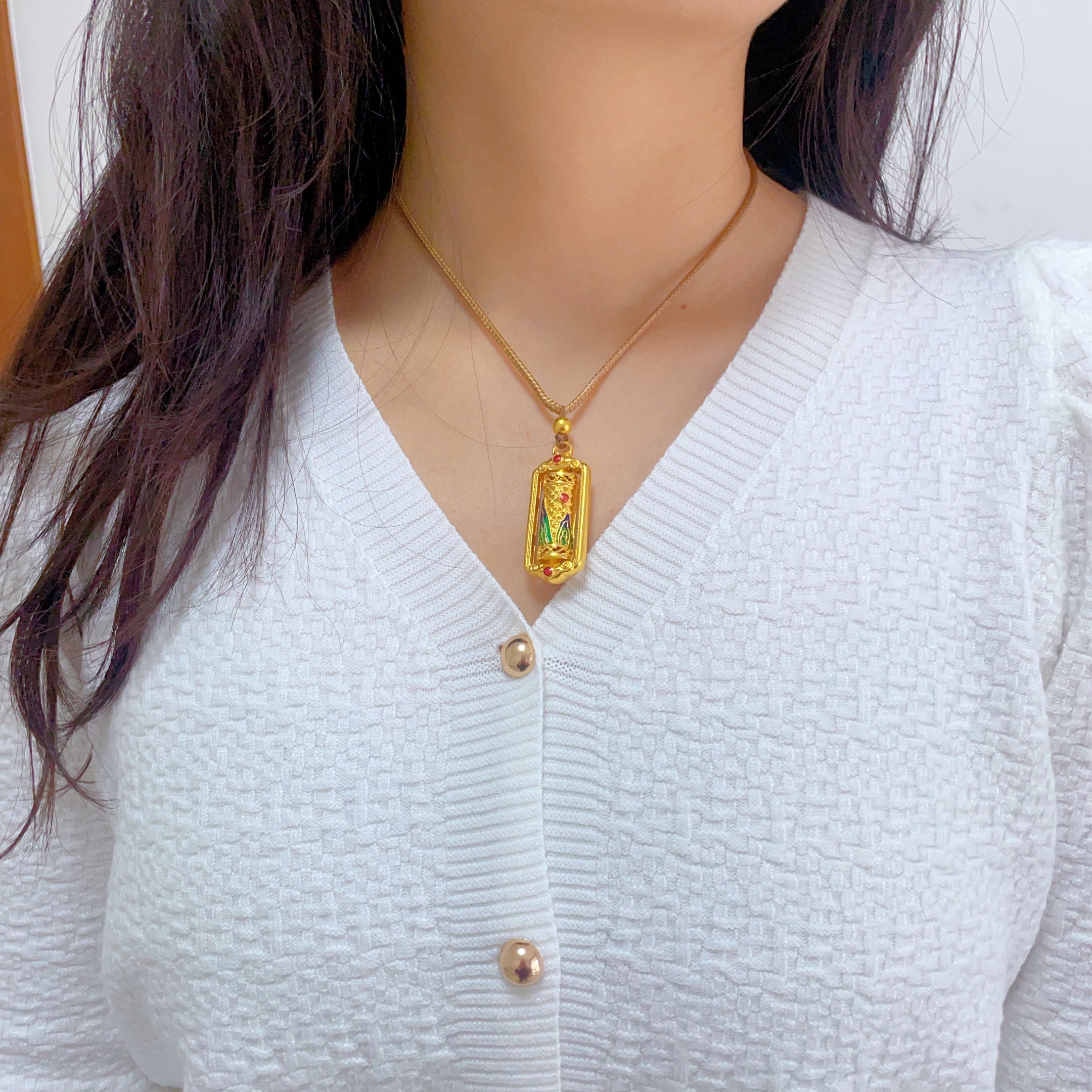 金包银吊坠女珐琅彩千里江山图转运轮大牌时尚轻奢可转动国风吊坠