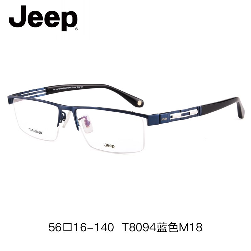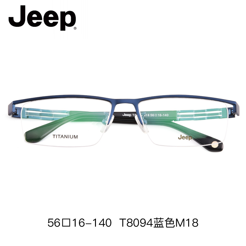 新款吉普近视眼镜框男 精致纯钛一体眉毛框商务半框镜架T8094