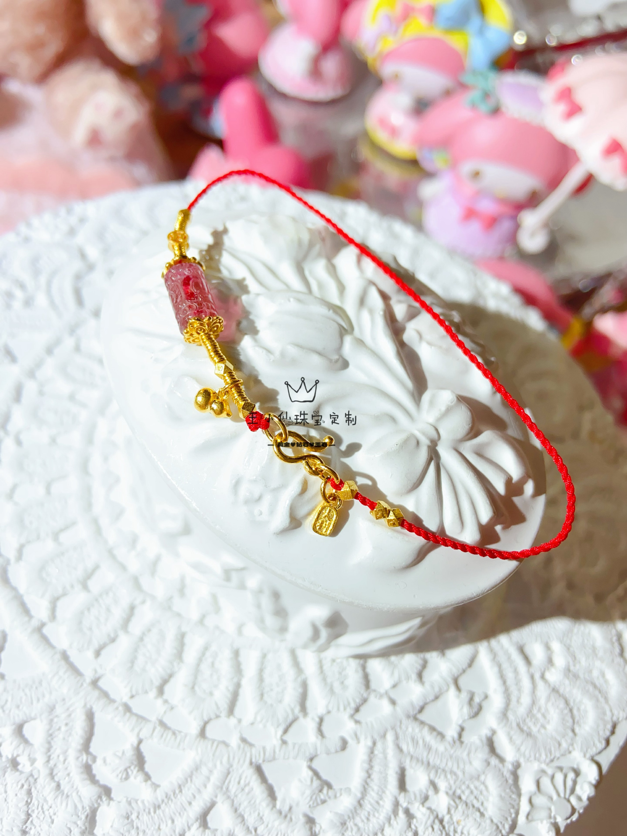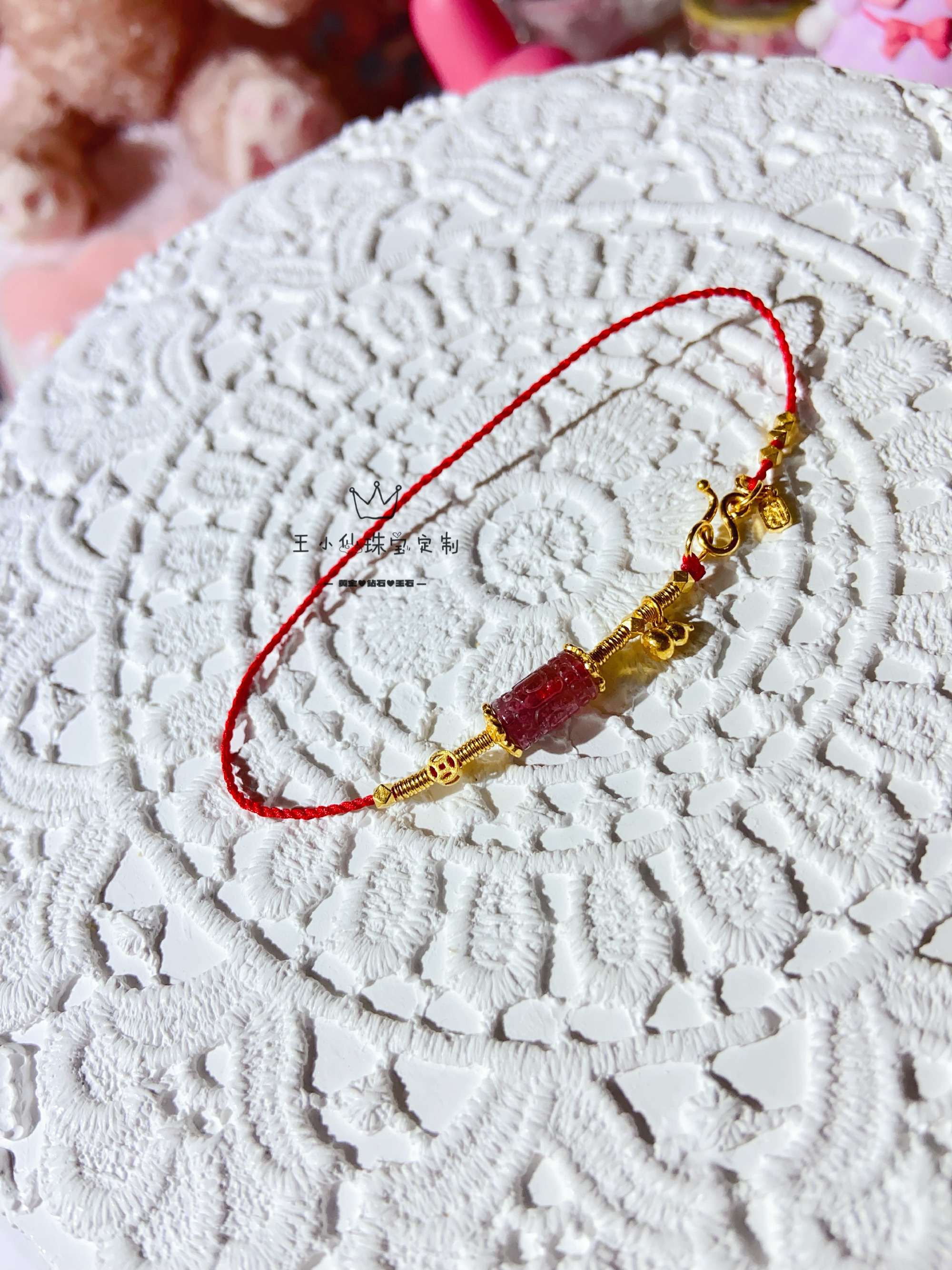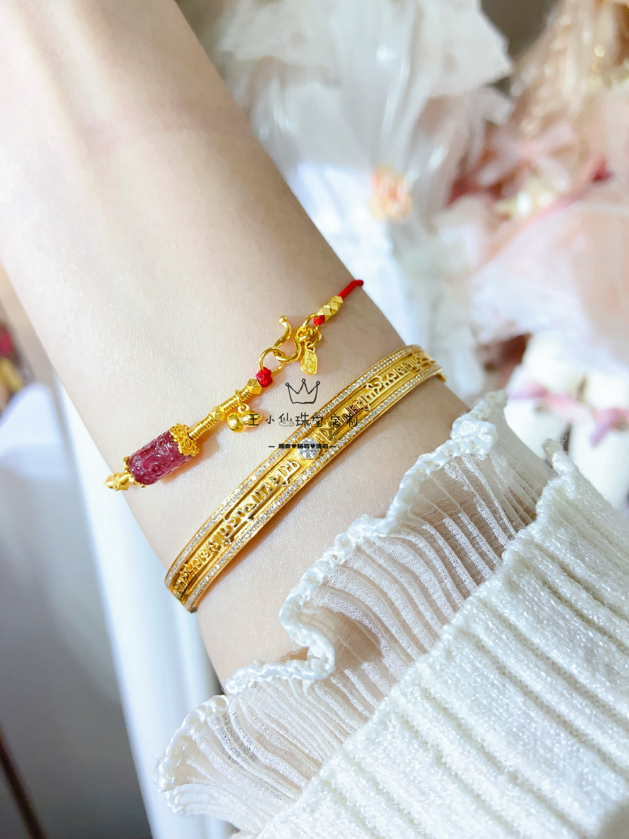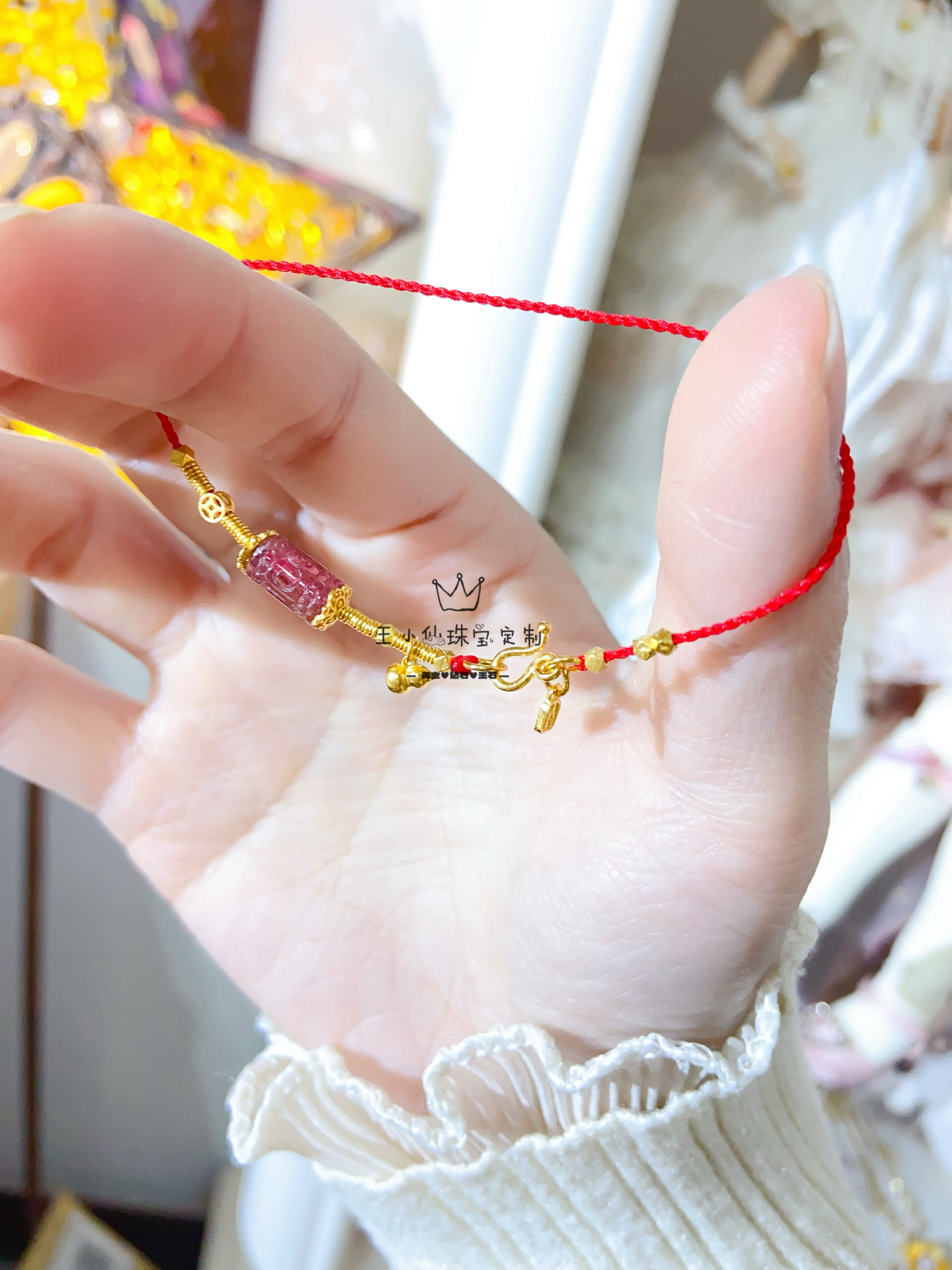 足金天然回纹珠碧玺桶珠手工古法金葫芦招财铜钱大吉大利手绳
