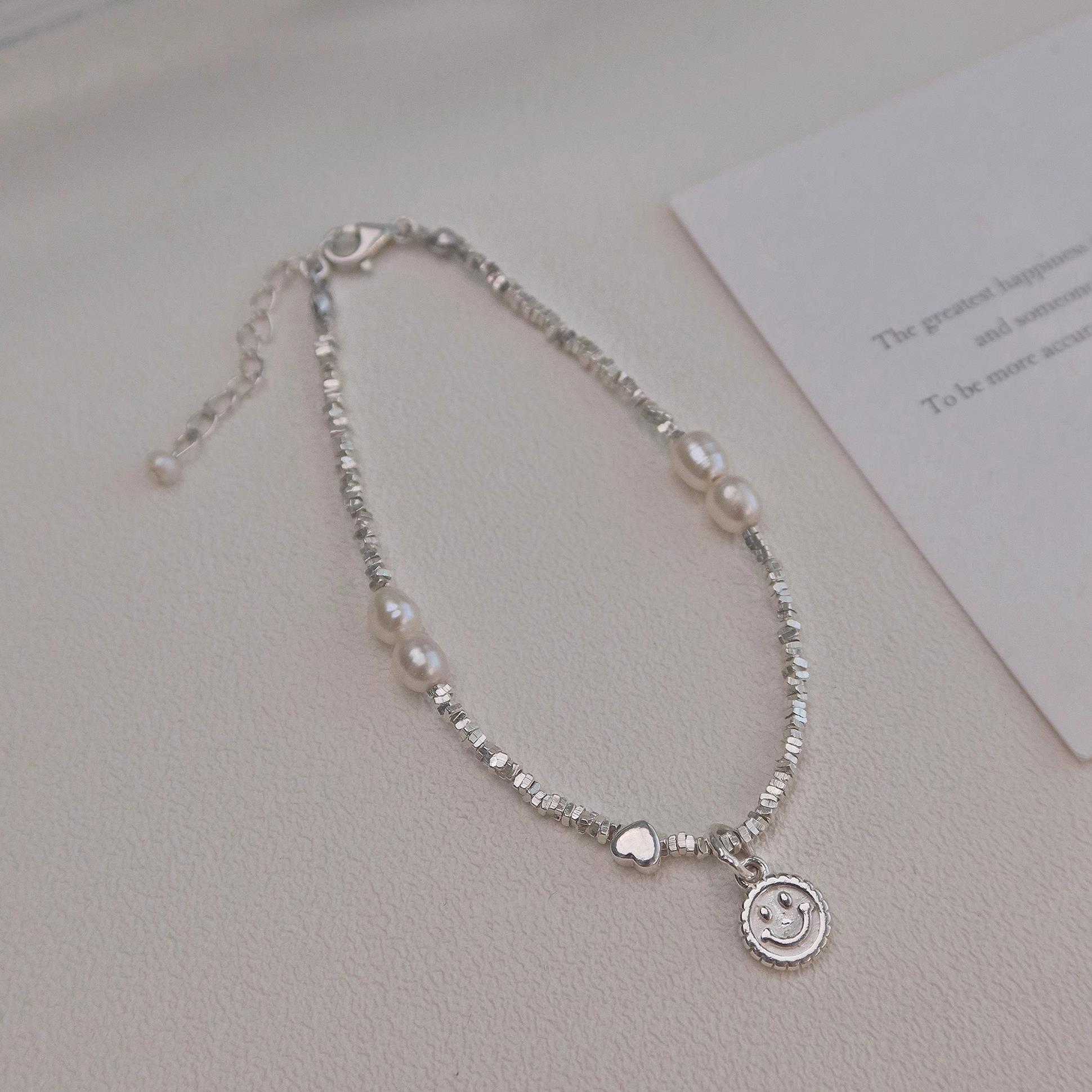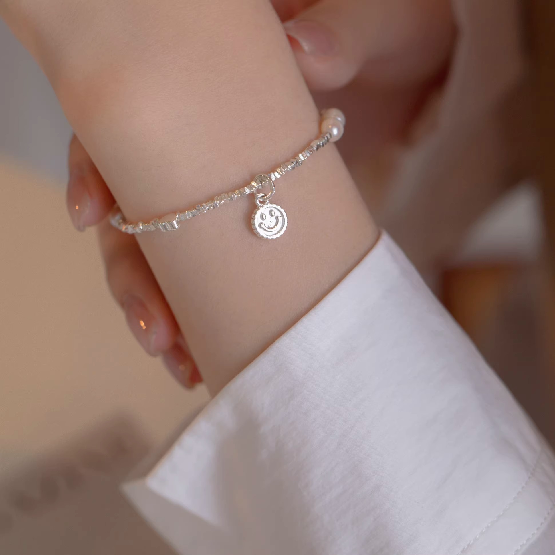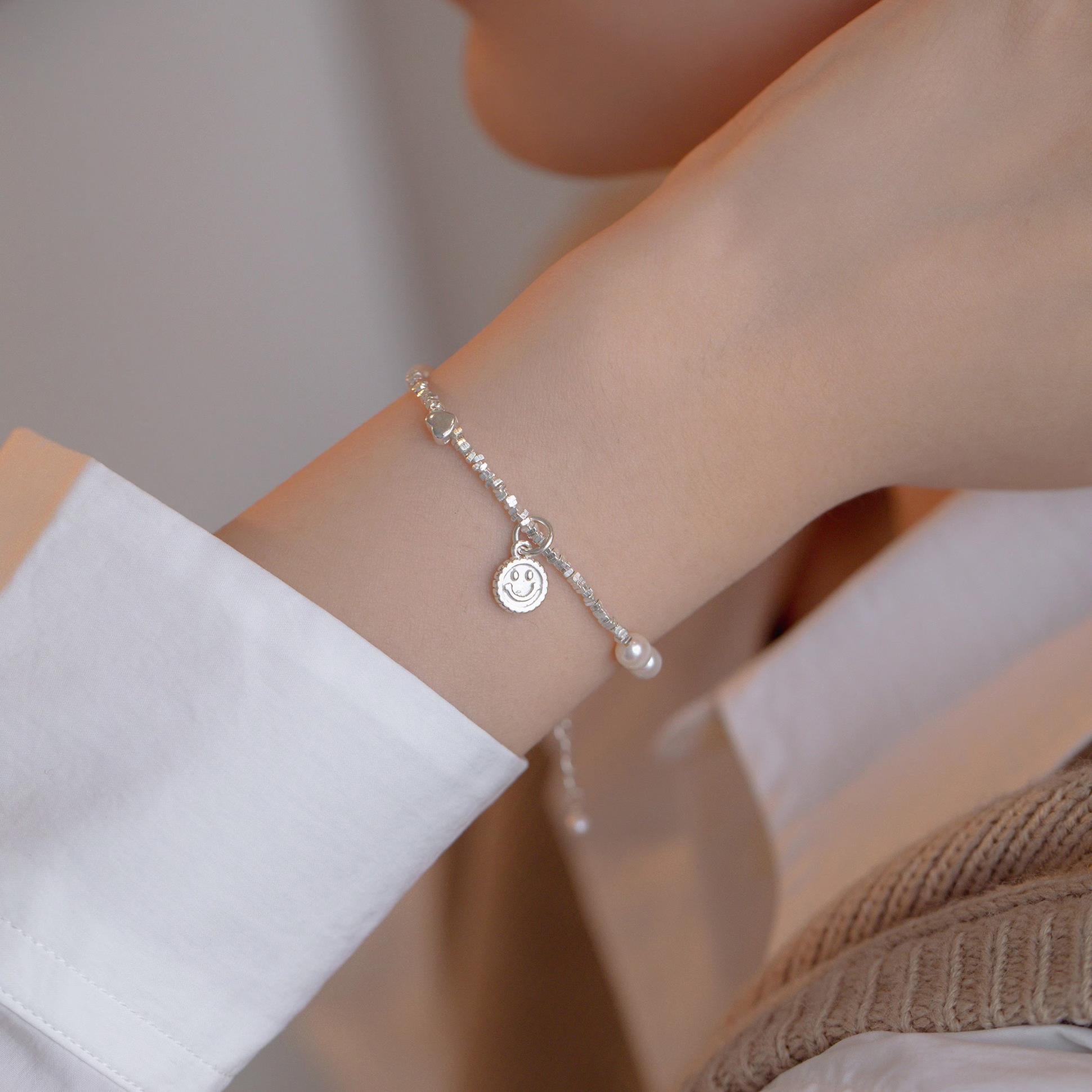 s925纯银珍珠爱心碎银手链女生轻奢小众精致手串2024年新款手饰品