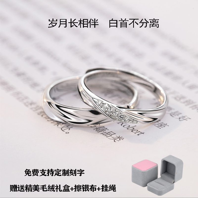 情定一生纯银情侣戒指一对时尚简约男女对戒定情信物纪念小众刻字