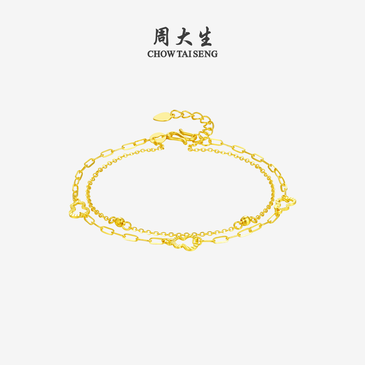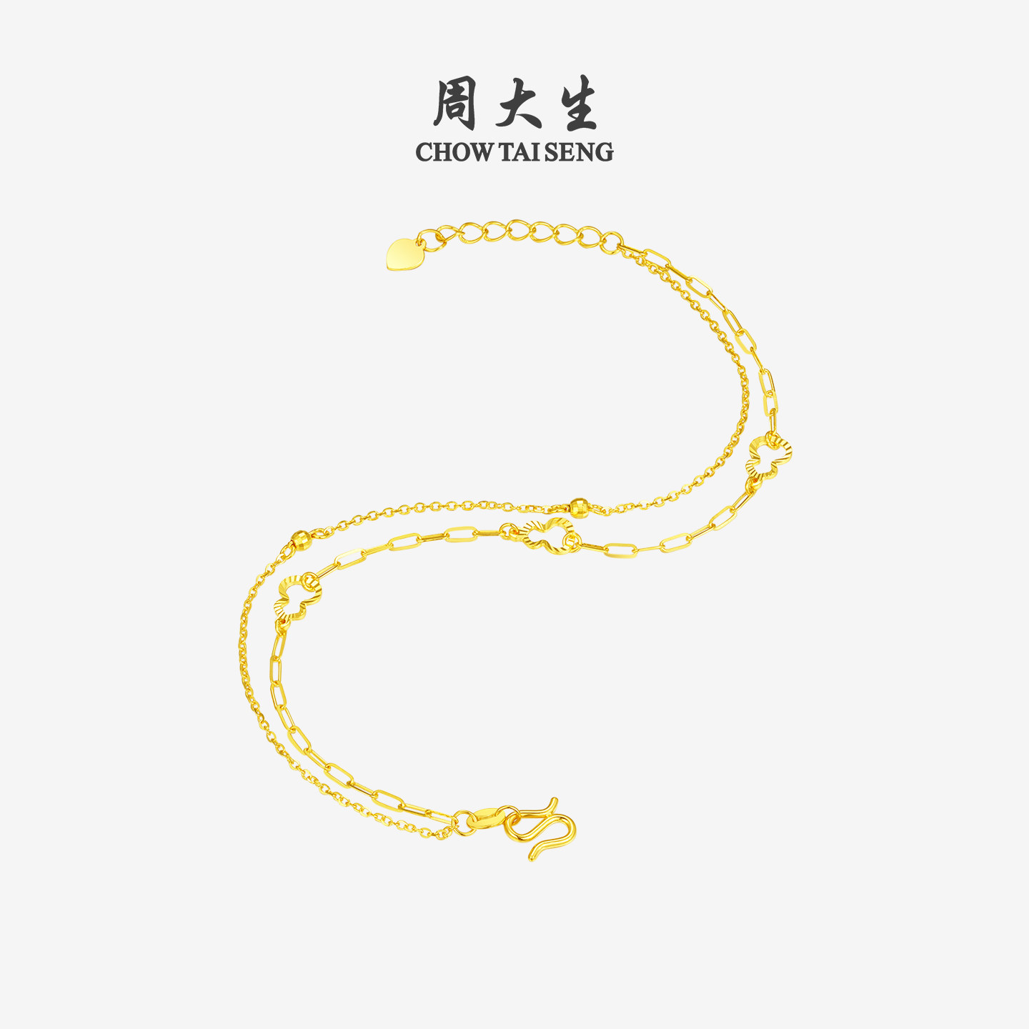 周大生黄金手链女足金5G双层葫芦小金珠O字链双层手饰送女友礼物