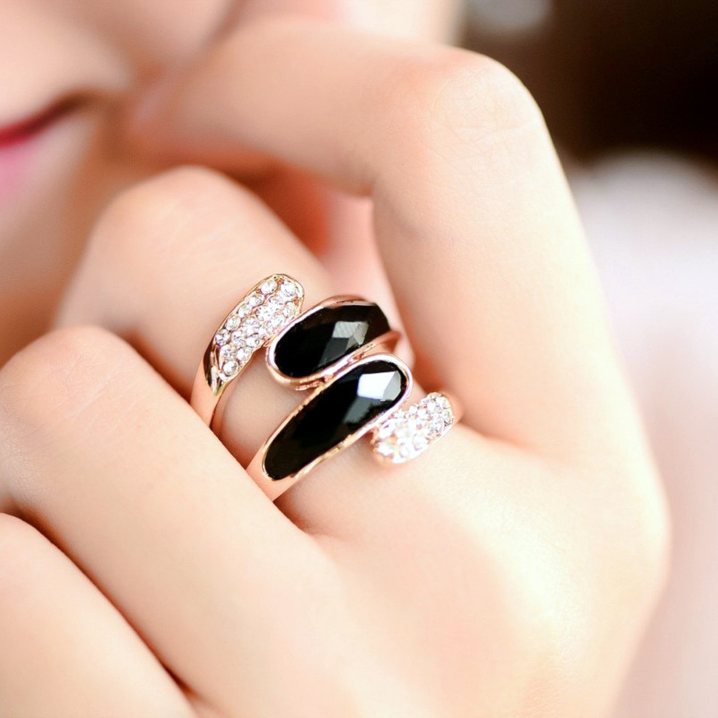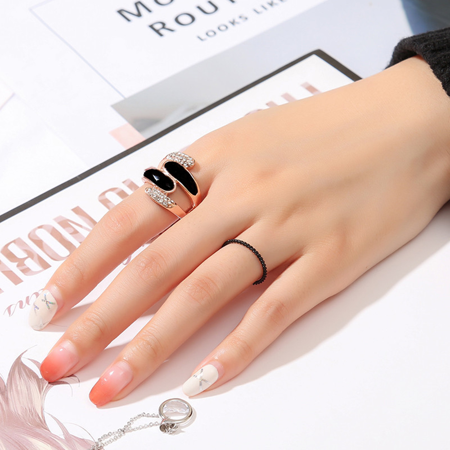 欧美夸张个性饰品戒指女轻奢高级感小众食指黑色时尚玫瑰金大指环