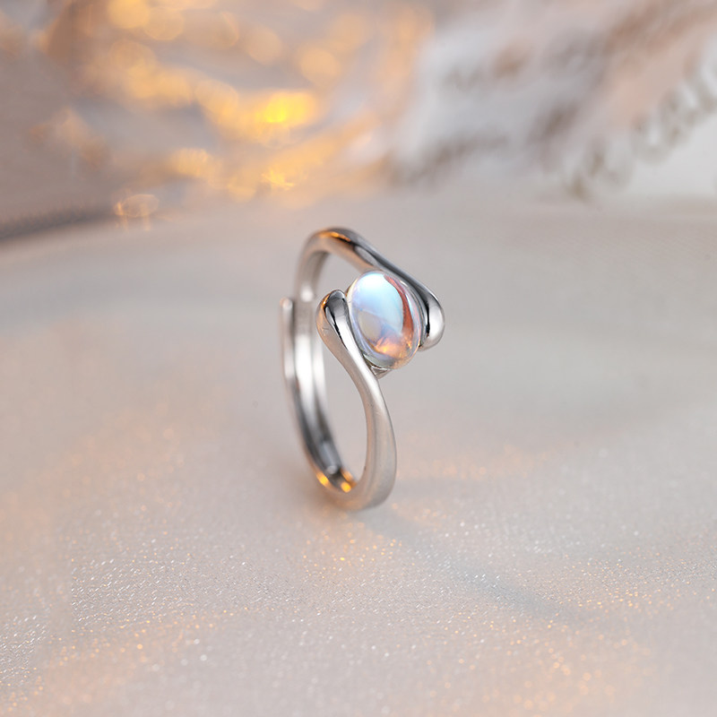 Z小姐925纯银月光石戒指2025新款爆款轻奢小众可调节食指女戒高级