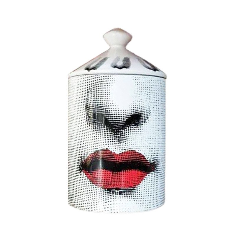 出口意大利人脸陶瓷香薰杯子带盖家E居装饰收纳摆件烛台化妆笔刷