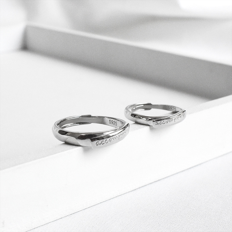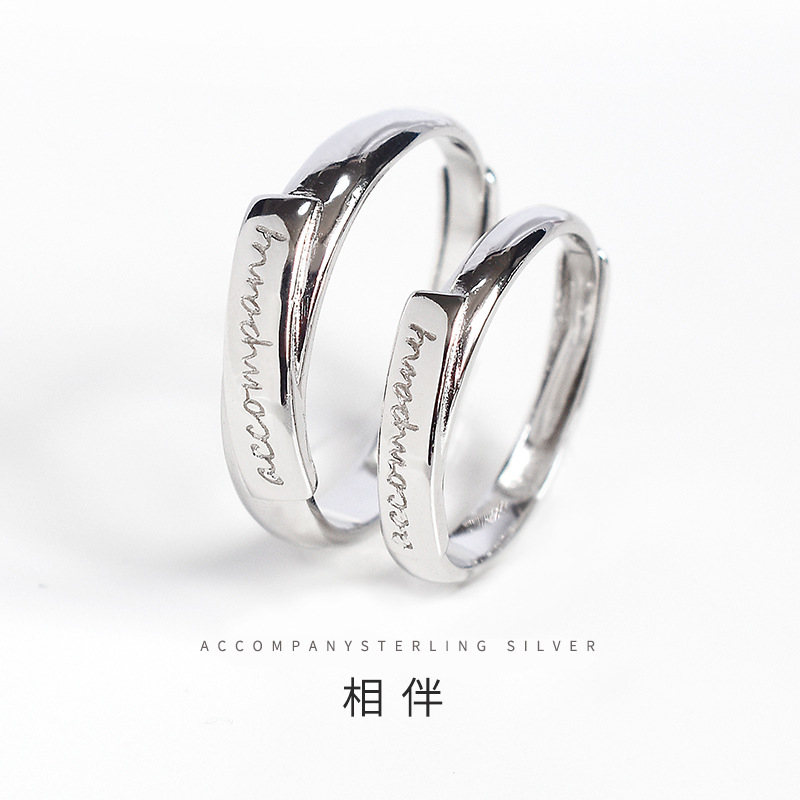 刻字accompany相伴925纯银情侣对戒字母小众设计日韩戒指男女一对