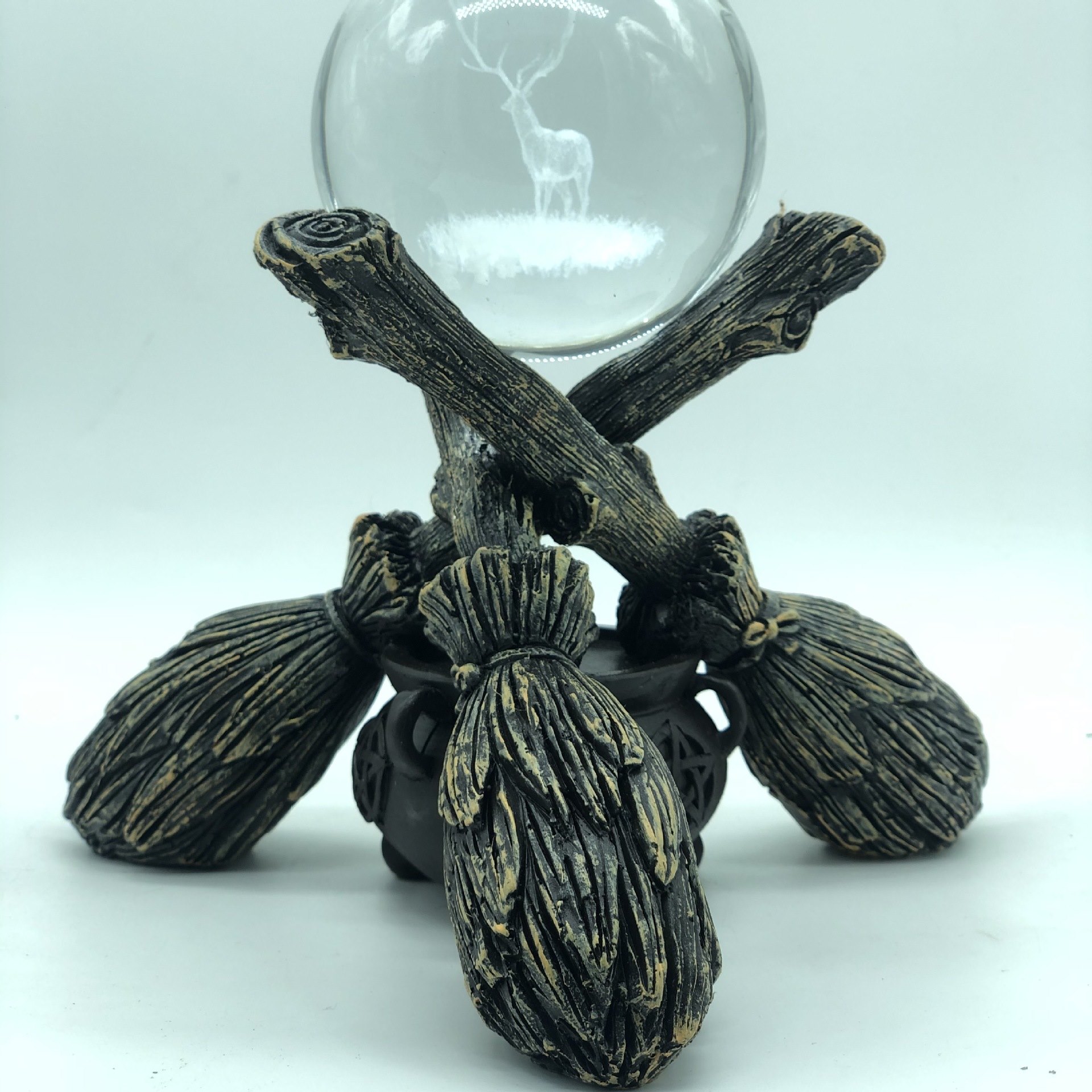 水晶球摆件展示架树脂扫帚塔罗桌面装饰支架水晶球底座球座礼物