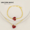 法式复古珐琅红色爱心项链高级感轻奢小众锁骨链脖子配饰毛衣链