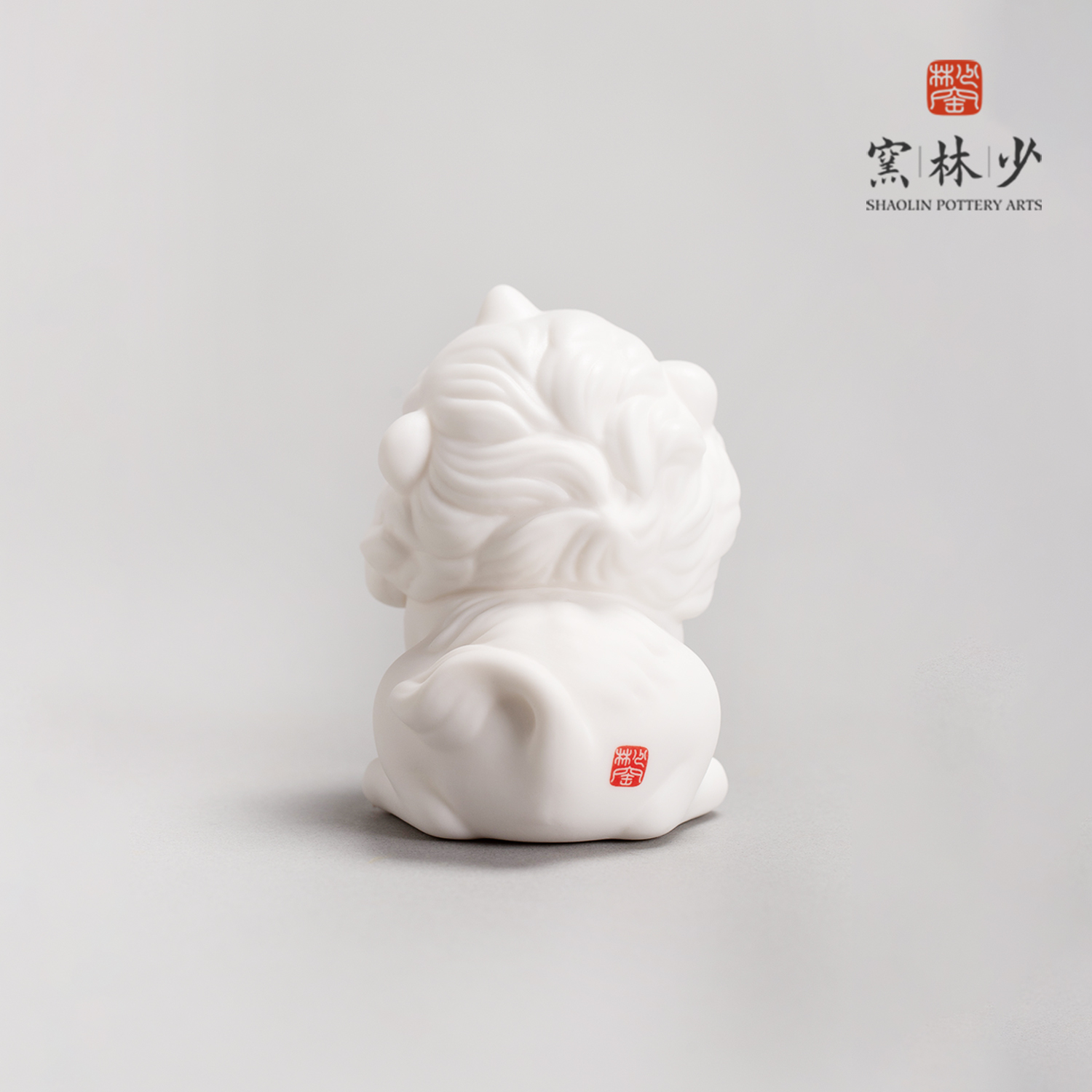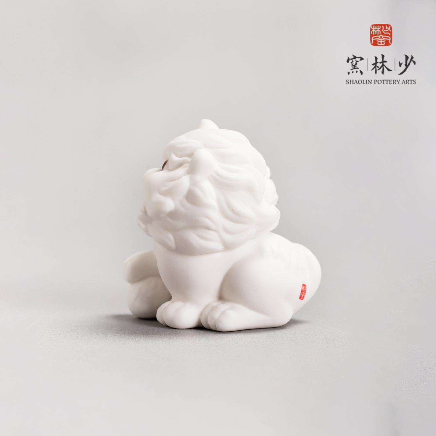 少林窑高档陶瓷狮子摆件小号招财店铺办公客厅茶桌面装饰品礼盒装