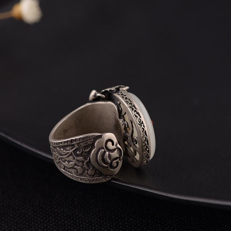 网红- S925银创艺设计银饰指环 女福禄如意元宝和田玉平安扣戒指