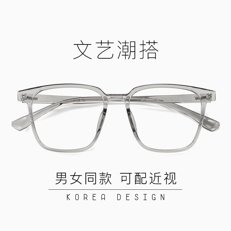 网上配镜散光近视眼镜女透明灰超轻款防蓝光可配有度数眼睛框架男