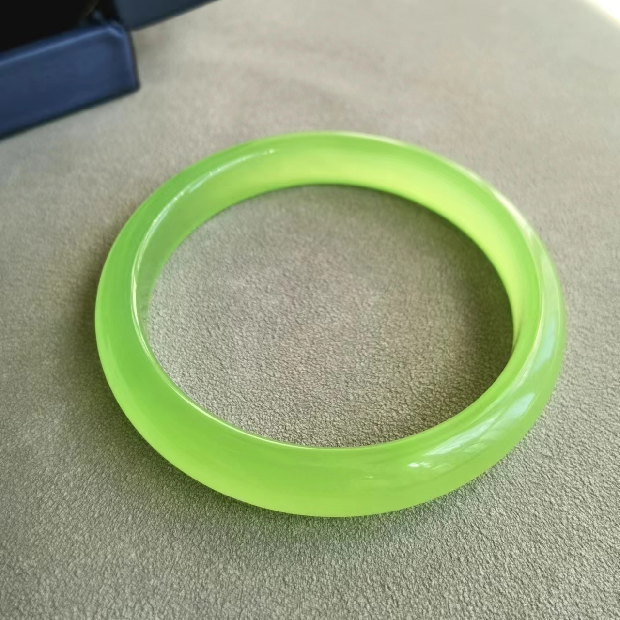 天然果绿色玉髓玛瑙福镯子手镯冰透玉镯玉石饰品女正品鉴定证书