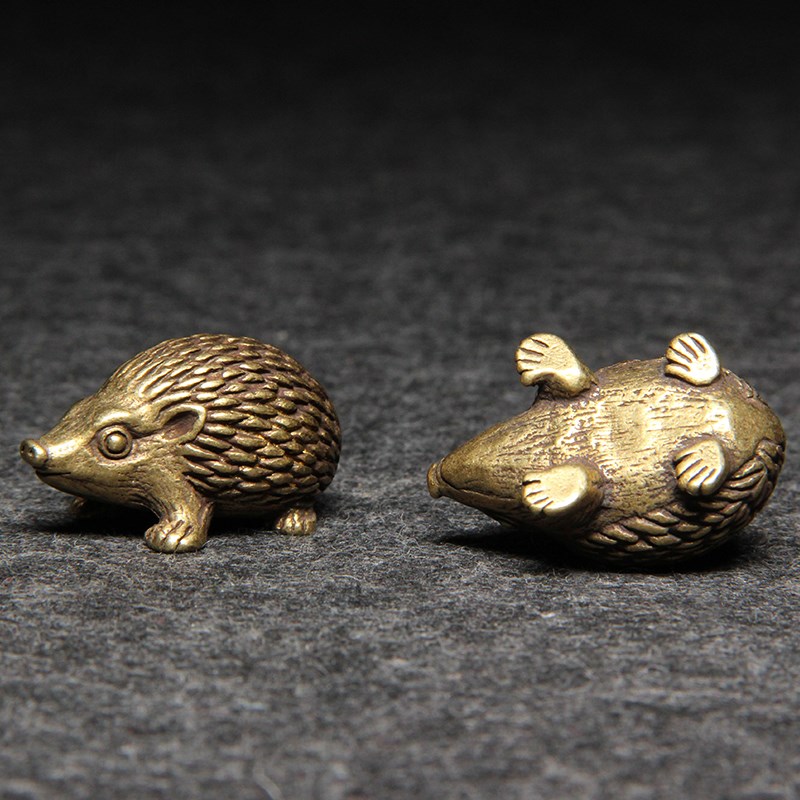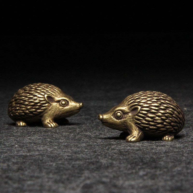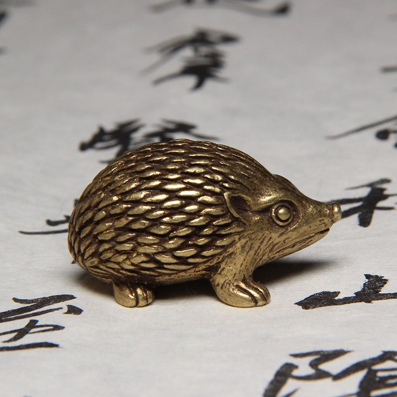 速发铜刺猬摆件实心黄铜小刺猬手把铜茶宠仿古铜器件猬件刺雕小摆