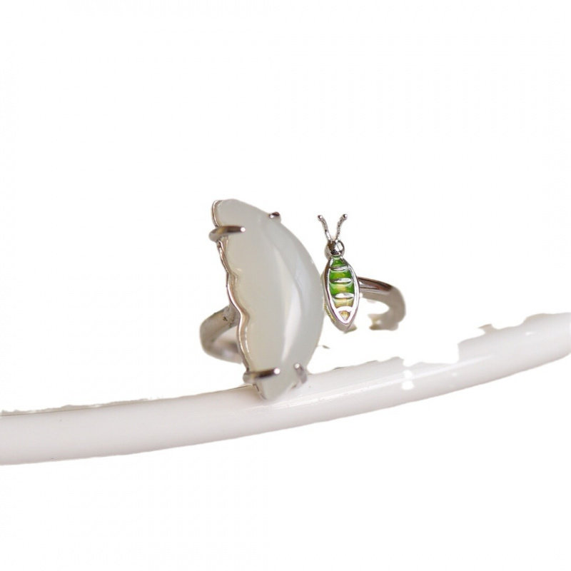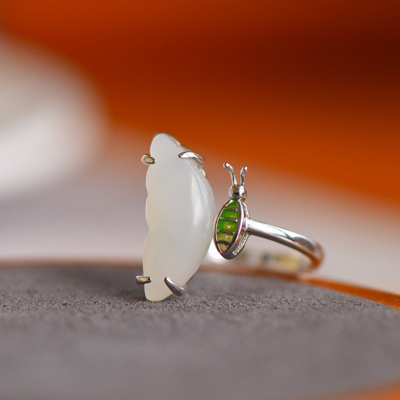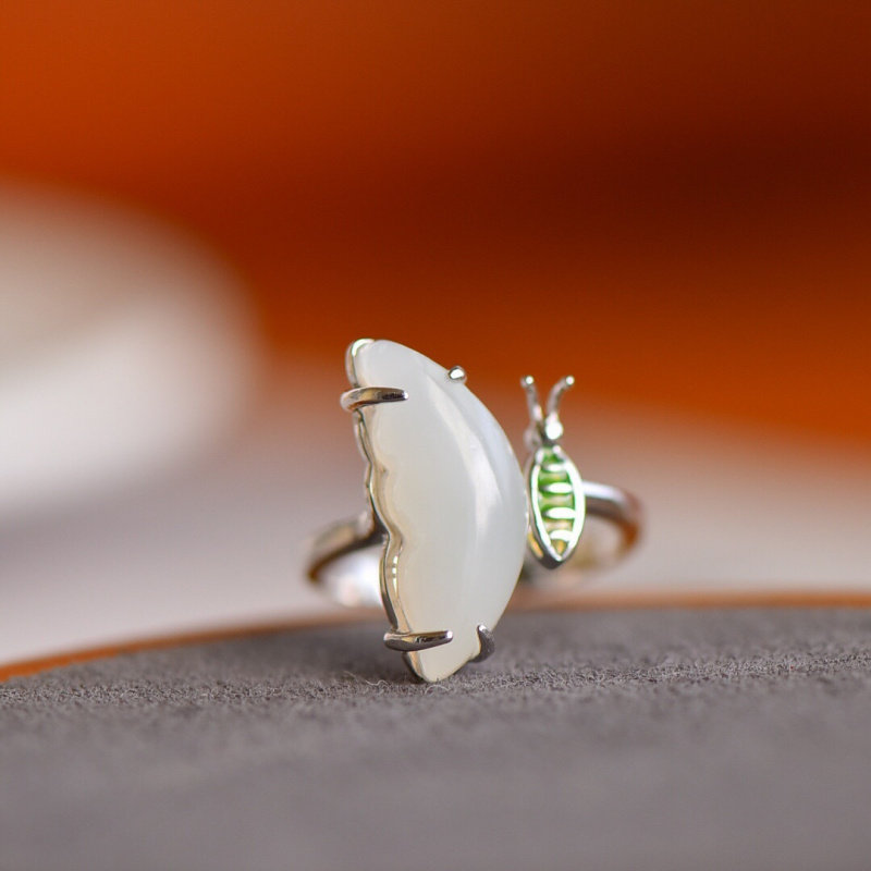 【新年转运】s925银镶嵌新疆和田玉白玉蝴蝶戒指女款简约自然气质