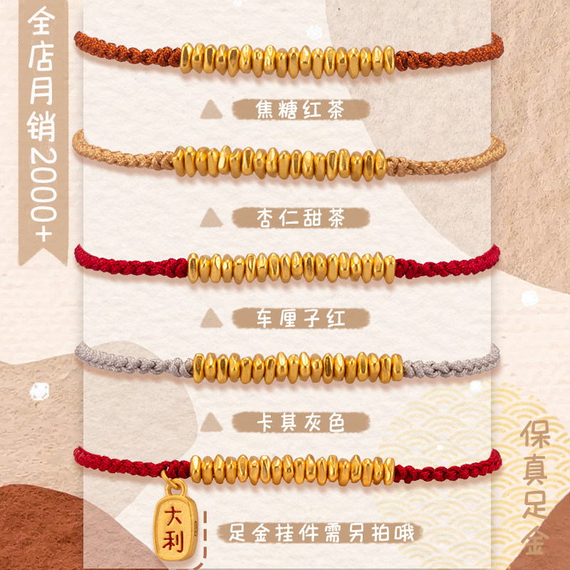 足金999小克重黄金碎金子转运珠手绳红绳叠戴手链生日新婚礼物女