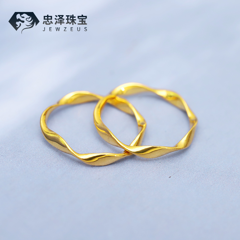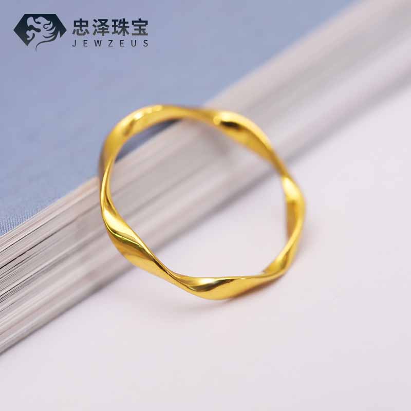 足金999麻花戒指女 正品5G莫比乌斯时尚指环黄金光面交叉戒子指环
