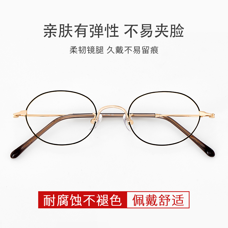椭圆形眼镜框女小脸超轻纯钛小框眼睛框镜架网红款可配高度数近视