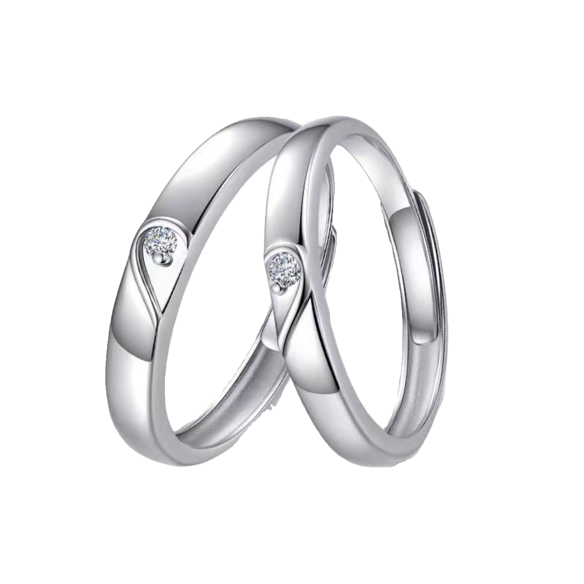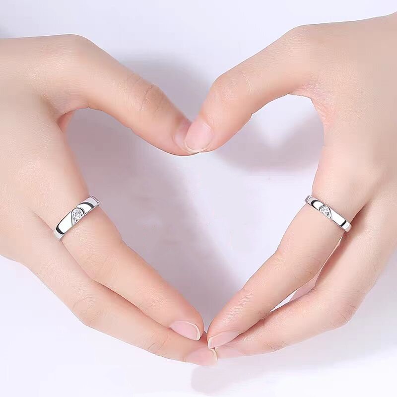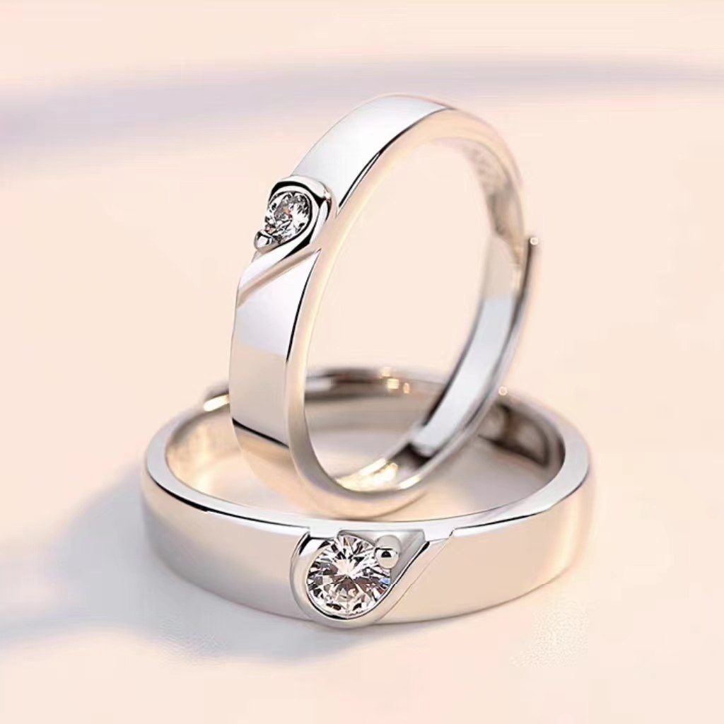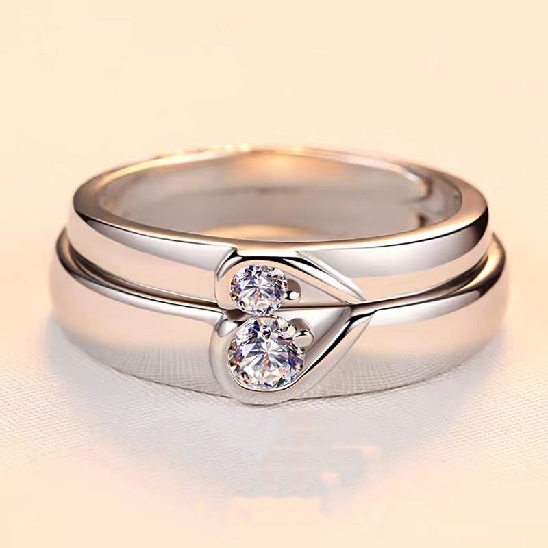 PT950铂金进口D色莫桑石镶嵌爱心情侣款戒指永结同心对戒心心相印
