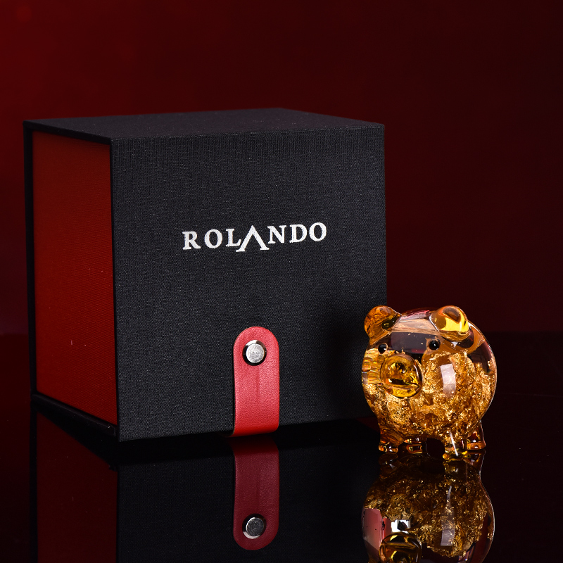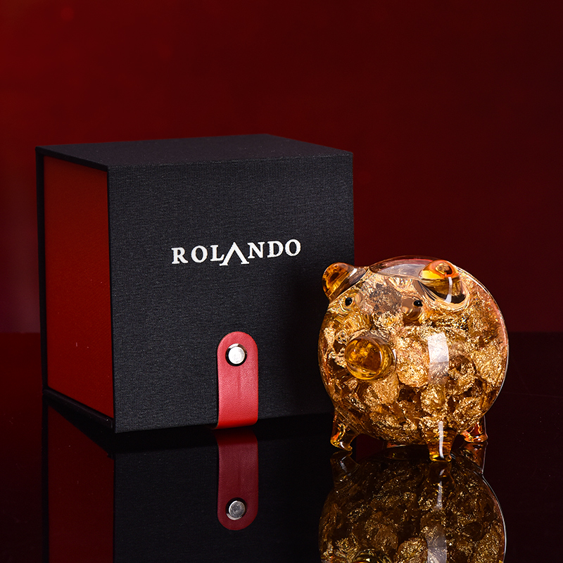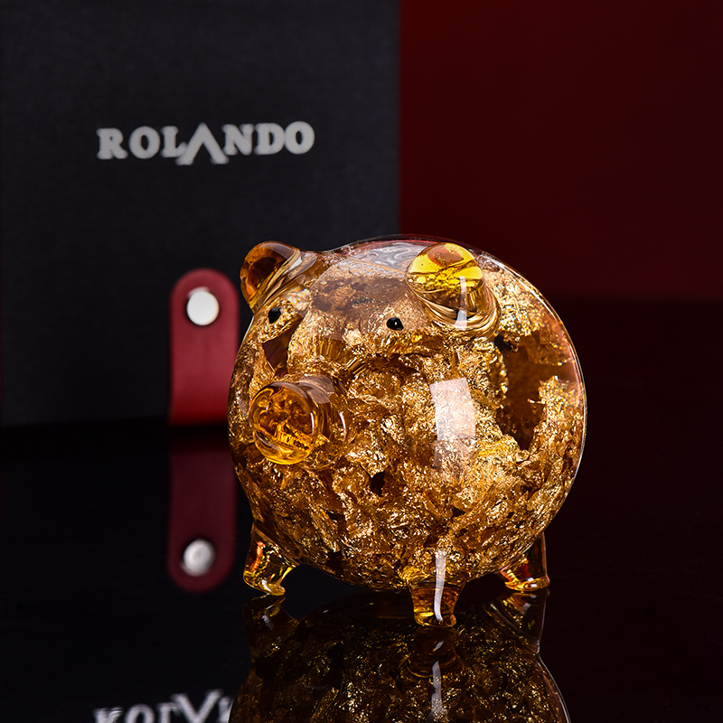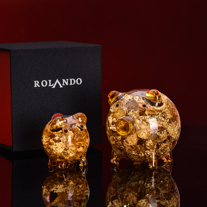 法兰晶创意礼物金箔玻璃金猪摆件装饰品工艺品祝福礼品摆件礼盒装