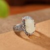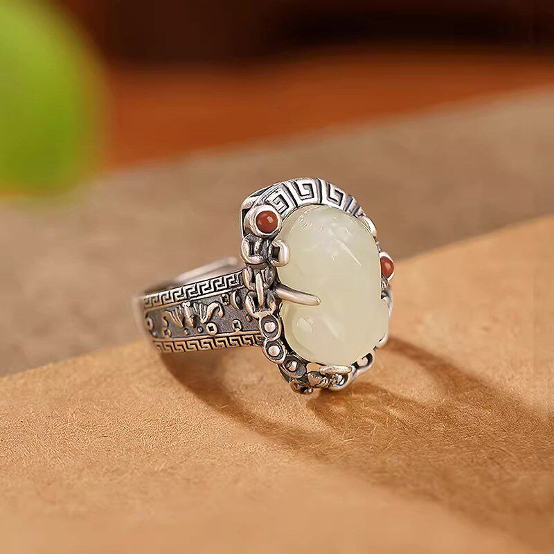 S925银和田玉貔貅戒指t女复古民族风做旧招财转运活口唐草纹食指