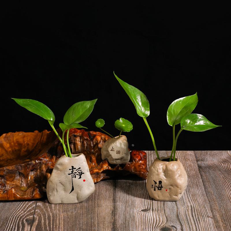 创意禅意茶桌陶瓷茶宠仿石头装饰品茶台办公室桌面小摆设水培摆件