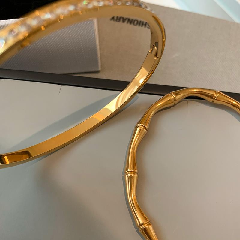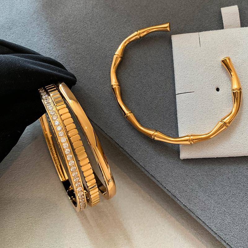 复古金色开口竹节素圈手镯女款轻奢小众精致高级独特金属钛钢手链