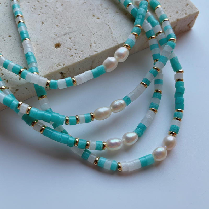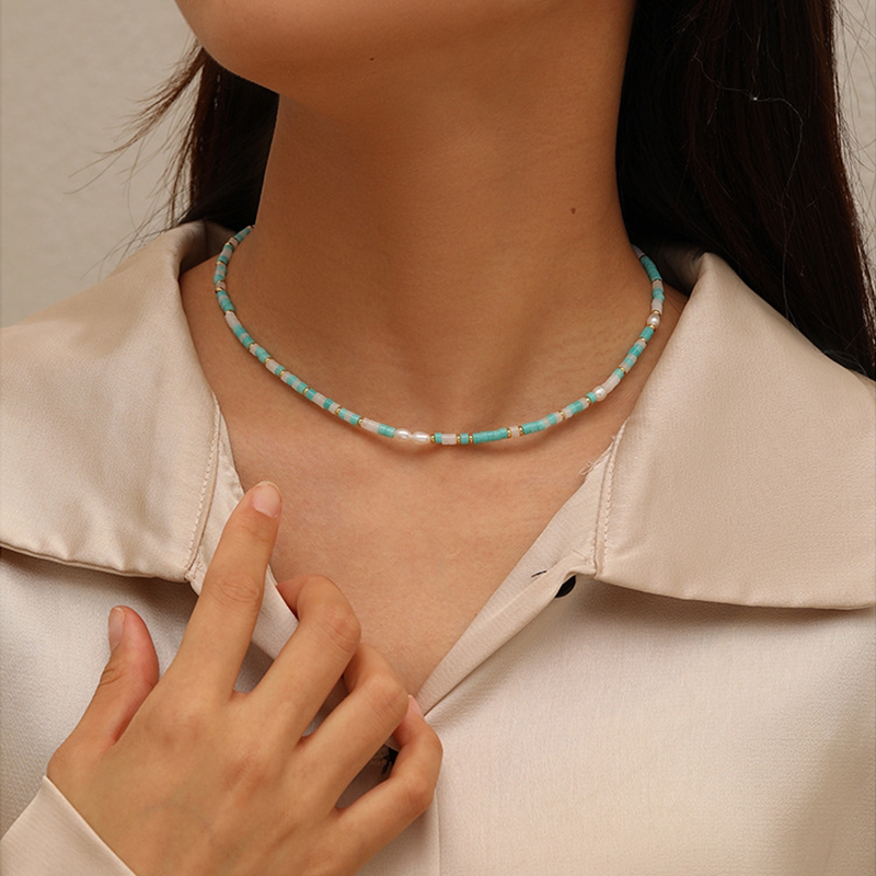 欧美风2025夏日新款清新串珠项链法式优雅风颈链波西米亚锁骨链女