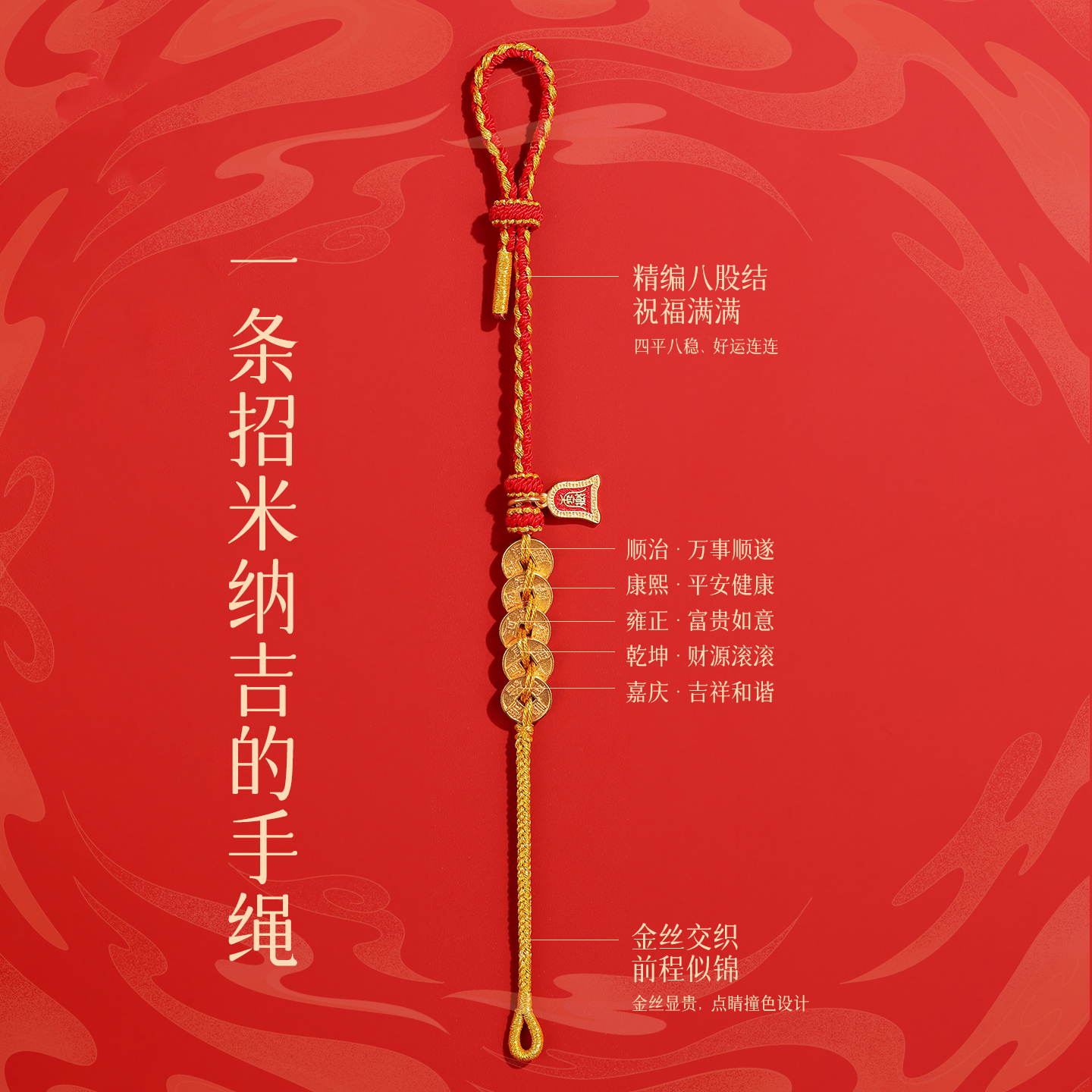 普陀山2025年新款手链本命年护身符五帝钱红绳编织平安手绳男女款