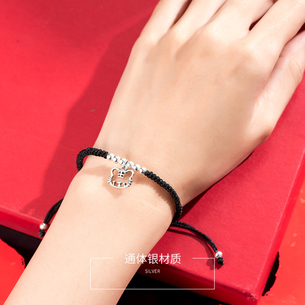 如虎添翼纯银手链女属虎吉祥物礼物红色编织手绳2025新款爆款配饰