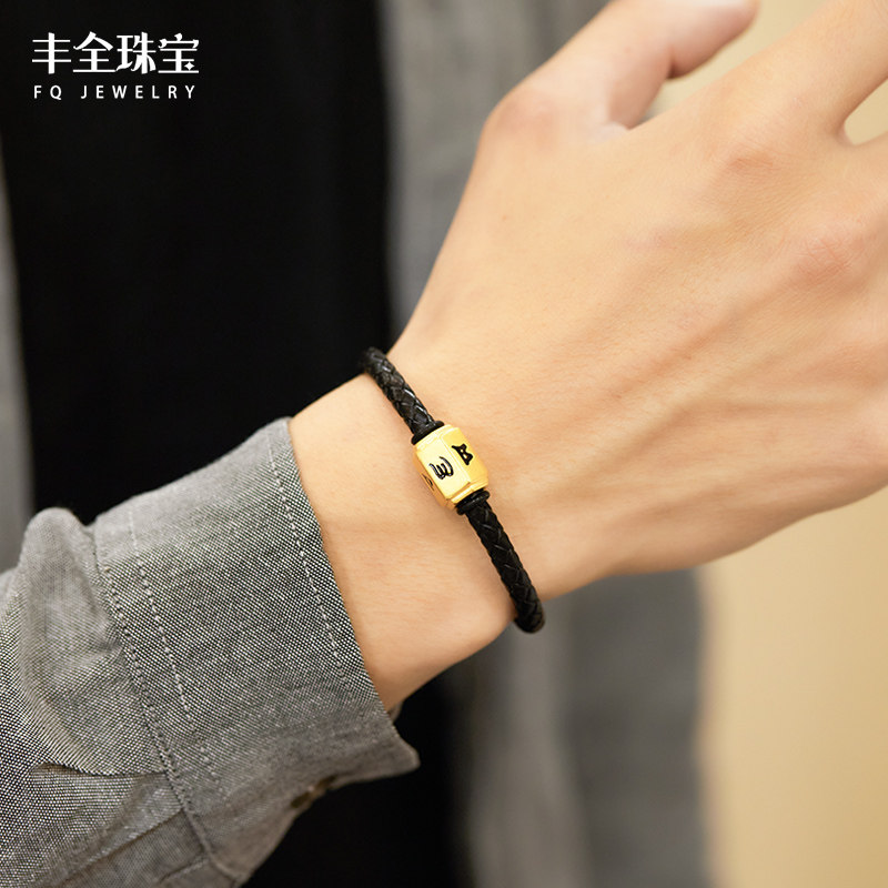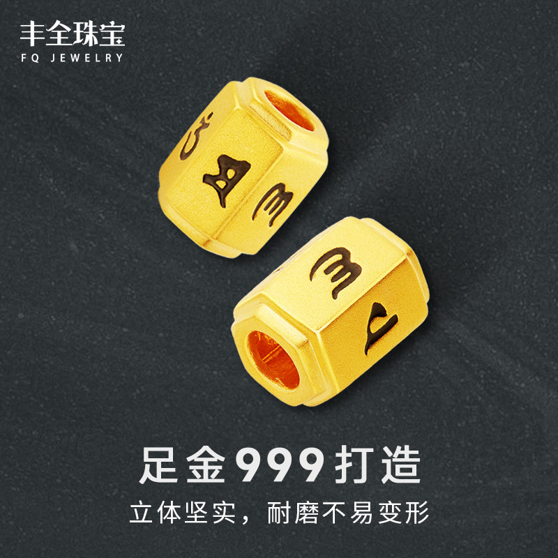 新款六字箴言黄金手链男款手环足金999真言转运珠女款纯金保平安