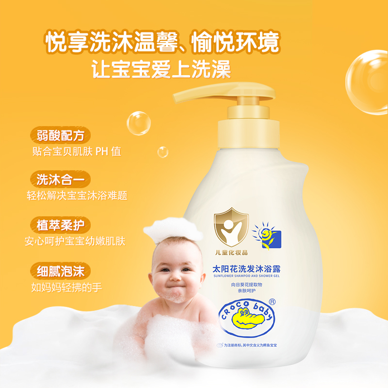 鳄鱼宝宝太阳花儿童沐浴露洗发水二合一新生儿婴儿洗护男女童专研