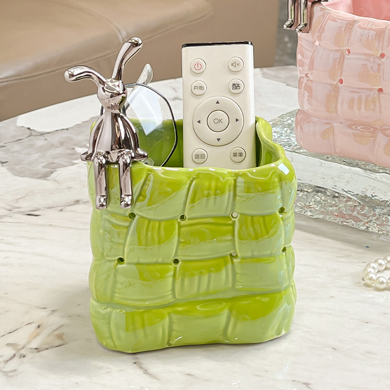 北欧笔筒陶瓷收纳桶遥控器钥匙收纳盒玄关摆件客厅茶几桌面置物架