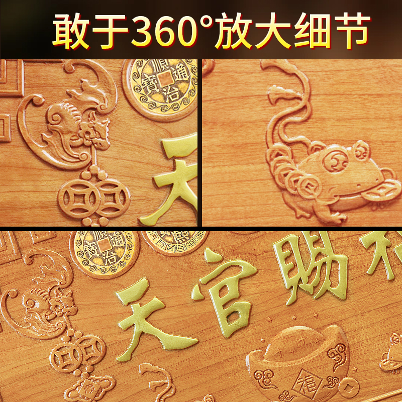 天官赐福挂件牌匾桃木门贴木雕定制摆件五帝钱门对门天宫客厅家居