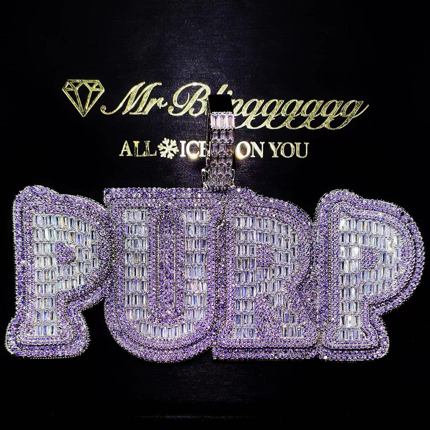 Mr.Blingggggg欧美嘻哈珠宝 PURP定制白紫色气泡古巴链字母吊坠