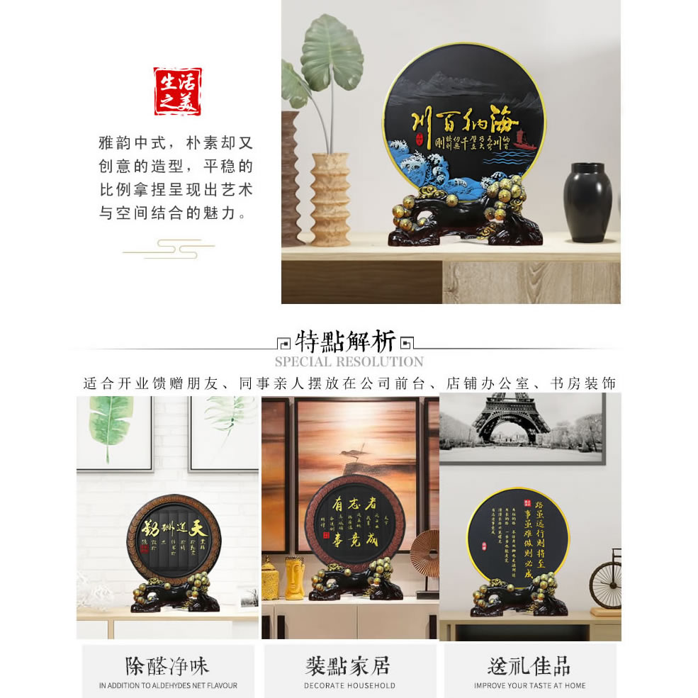 电视柜客厅摆件家居装饰品办公室桌面竹炭炭雕书柜工艺品厚德载物