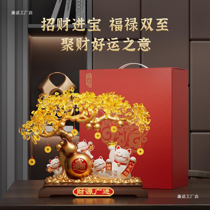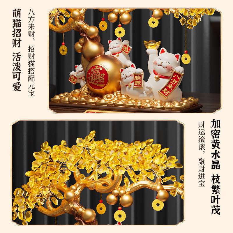 财源广进发财树猫摆件客厅店铺收银台装饰品乔迁开业礼物绢花通用