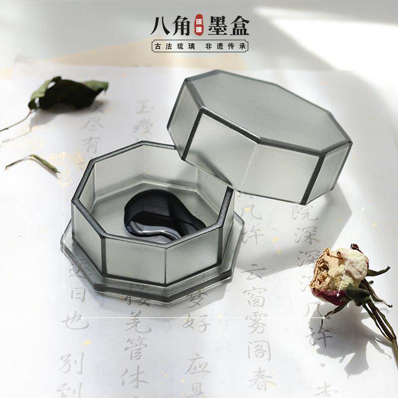 琉璃彩色书法文房多用墨盒带盖线香香炉水盂毛笔笔搁笔洗桌面摆件