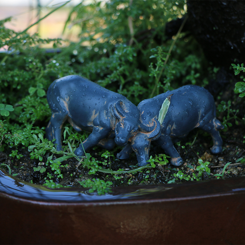 仿真水牛黄牛桌面客厅装饰创意卡通可爱摆件花盆盆景造景动物配件
